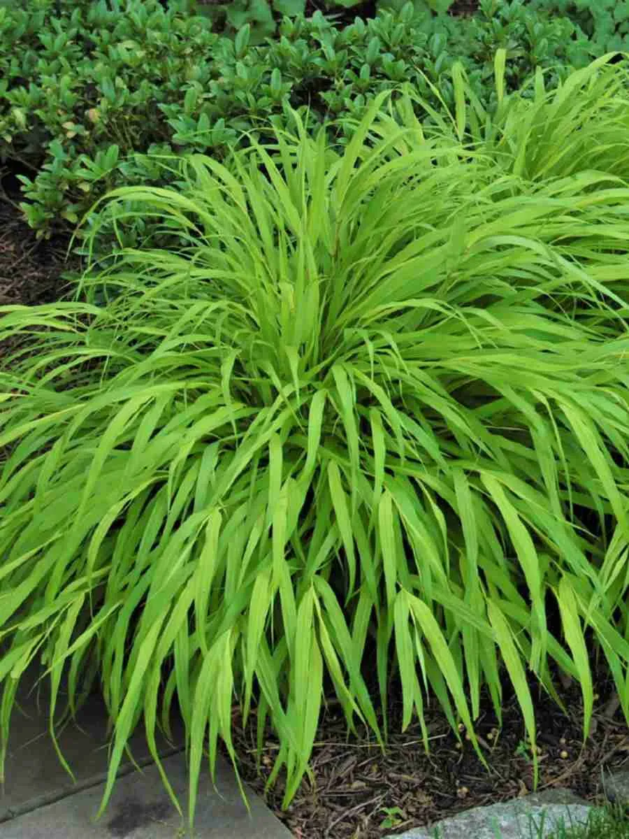 Хаконехлоа большая сорта *Nicolas* — изысканное декоративное растение семейства Злаковые (Poaceae), покоряющее сердца садоводов своей утончённой красотой и грациозностью. Стройная трава образует живописную куртинку высотой до полуметра, состоящую из тонких дугообразных стеблей, покрытых узкими листьями изумрудной окраски с серебристым отливом. Листья слегка волнистые, словно нежные ленты, плавно ниспадающие каскадом, создавая впечатление лёгкого шелестящего водопада зелени. Цветёт хаконехлоа мелкими невзрачными колосками, однако именно её листва становится главным украшением сада, особенно осенью, когда приобретает тёплые золотисто-жёлтые оттенки. Растение предпочитает полутень и влажные плодородные почвы, прекрасно чувствует себя в рокариях, альпинариях и миксбордерах, где подчёркивает свою природную элегантность и создаёт атмосферу спокойствия и гармонии.