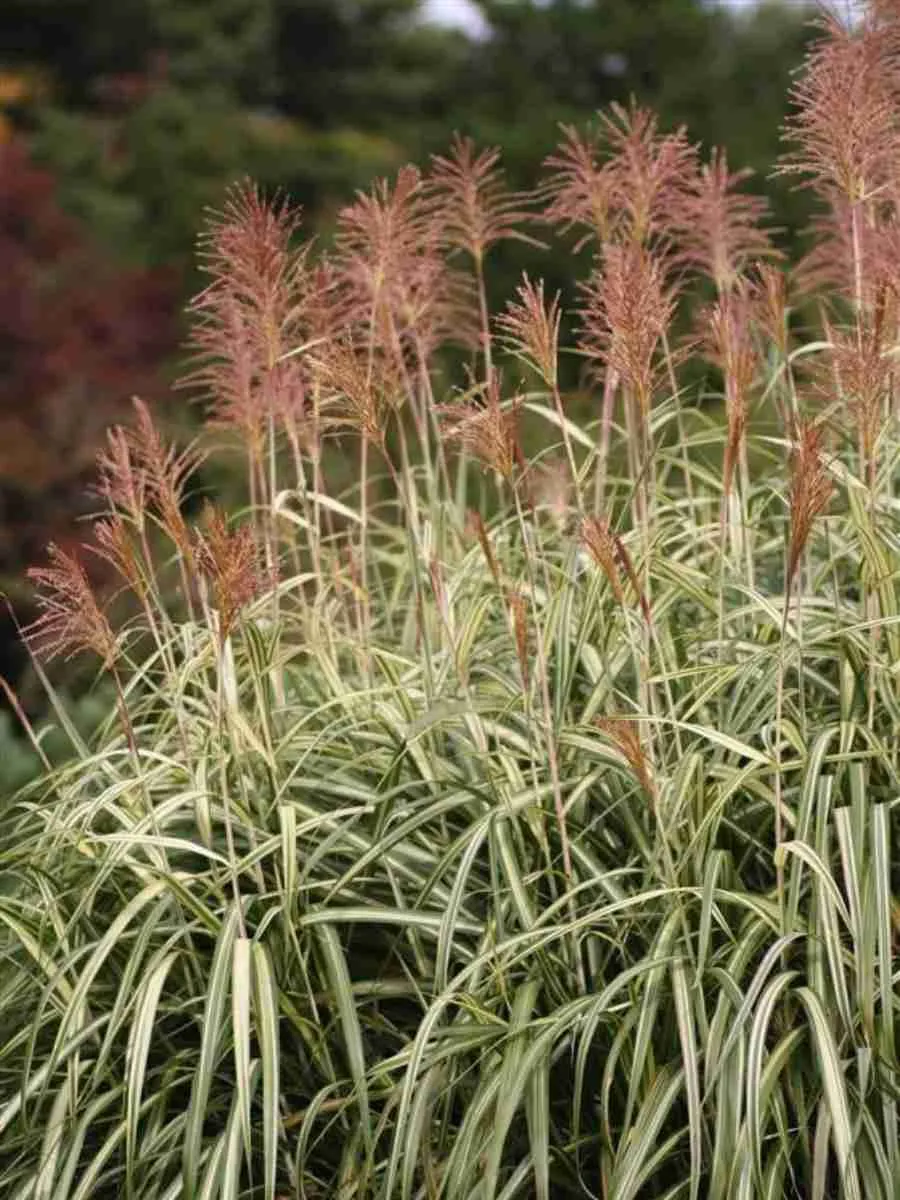Мискантус китайский сорта Кабаре (Miscanthus sinensis 'Cabaret') представляет собой эффектную декоративную траву с элегантной вертикальной формой куста высотой до полутора метров. Листья узколанцетные, длинные и тонкие, окрашены в серебристо-зелёный оттенок с широкими продольными кремово-белыми полосами, придающими растению особую живописность и контрастность. Осенью листья приобретают золотисто-жёлтые тона, украшая сад яркими осенними красками. Цветёт растение пышными воздушными метельчатыми соцветиями пурпурно-розового цвета, возвышающимися над листвой и сохраняющими свою привлекательность вплоть до зимы. Куст быстро разрастается, формируя плотные дерновины, устойчивые к ветру и зимним холодам. Предпочитает солнечные места и плодородные почвы, хорошо переносит засуху благодаря мощному корневищу. Благодаря своей красоте и неприхотливости мискантус широко используется в ландшафтном дизайне, создавая акценты и добавляя саду динамики и объёма.
