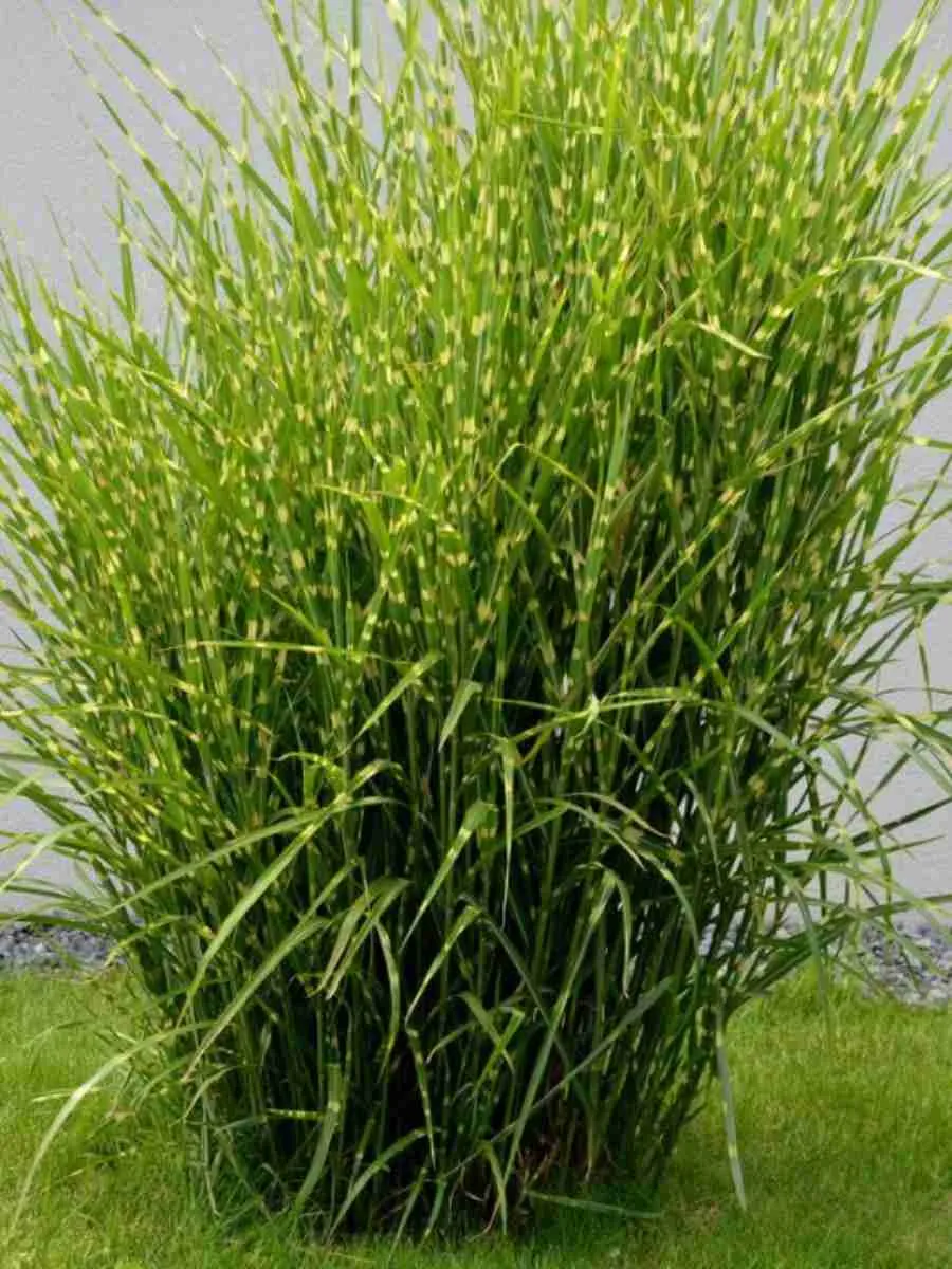 Мискантус китайский Zebrinus — изысканное декоративное растение семейства злаковых, покоряющее сердца садоводов своей элегантностью и утончённостью. Высокорослый многолетник достигает полутора-двух метров высоты, формируя пышную куртинку стройных стеблей, увенчанных узкими листьями изумрудной окраски с поперечными золотисто-жёлтыми полосами, словно нанесёнными кистью художника. Листья слегка волнистые, шелковистые на ощупь, придают растению особую воздушность и лёгкость. Осенью листья приобретают нежные оттенки оранжевого и бронзового цветов, создавая живописную игру красок. Цветёт мискантус поздним летом и осенью, выбрасывая длинные пушистые метёлки кремово-розоватого оттенка, возвышающиеся над листвой подобно перьям райской птицы. Эти соцветия долго сохраняют свою привлекательность даже после высыхания, украшая сад до самой зимы. Растение неприхотливо, предпочитает солнечные места и плодородные почвы, устойчиво к засухе и морозоустойчиво, прекрасно подходит для одиночных посадок, миксбордеров и живых изгородей, привнося в ландшафт нотки экзотики и благородства.