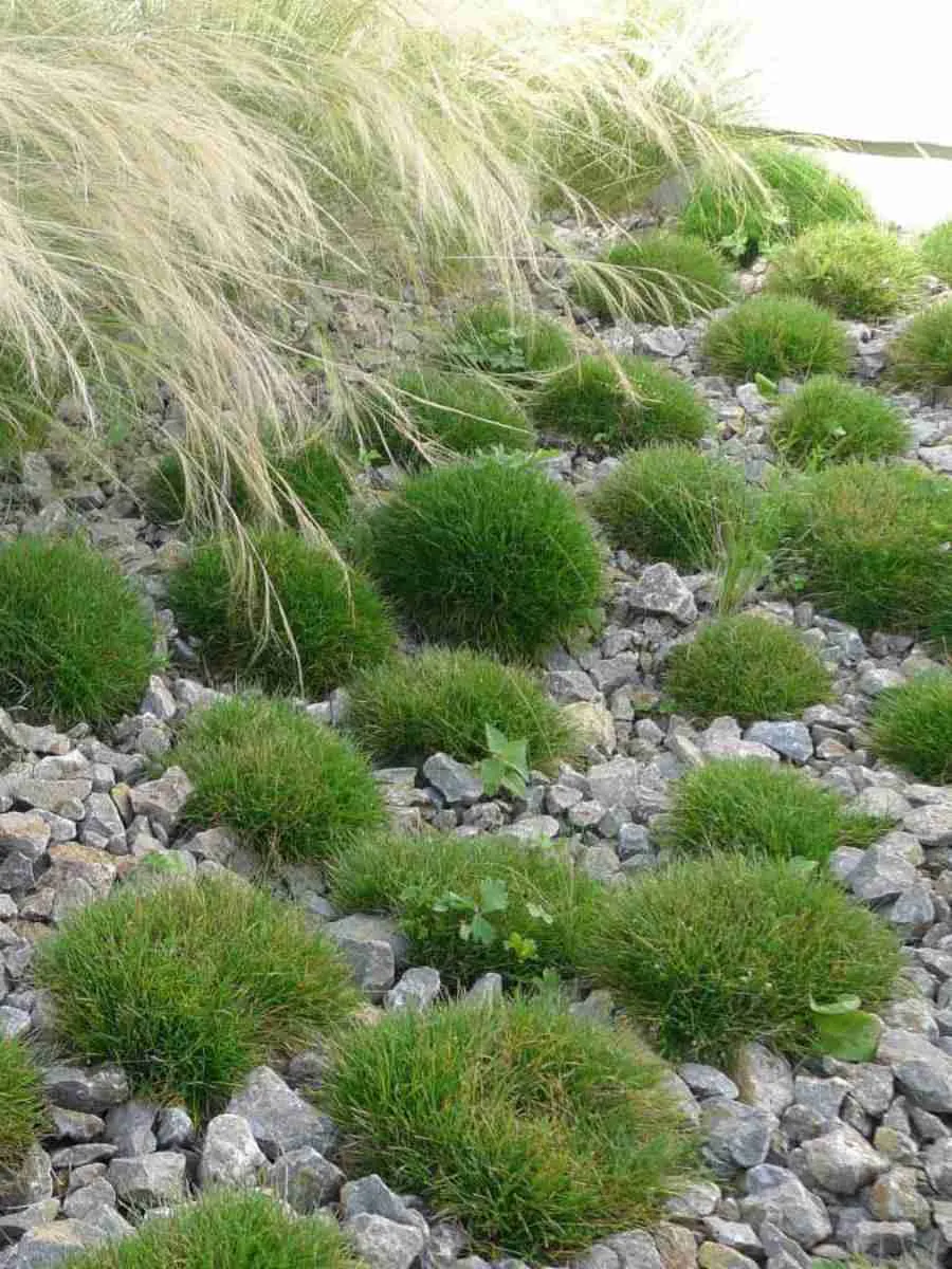 Овсяница Гаутера сорта *Pic Carlit* пленяет взор своей изысканной простотой и благородством форм. Это компактное травянистое растение образует плотную округлую дерновину высотой около 15–20 см, украшенную узкими линейными листьями насыщенного серо-зелёного оттенка с серебристым отливом, придающим ей особую декоративность даже вне периода цветения. Листья тонкие, слегка волнистые, словно нежная рябь на поверхности воды, создают впечатление лёгкости и воздушности. Цветёт овсяница мелкими колосками кремово-белого цвета, собранными в рыхлые метёлки, возвышающиеся над лиственной массой на тонких стеблях, создавая эффект невесомости и утончённости. Растение отличается устойчивостью к неблагоприятным условиям среды, прекрасно переносит засуху и мороз, сохраняя свою привлекательность круглый год. Благодаря своим миниатюрным размерам и элегантному облику идеально подходит для оформления альпийских горок, рокариев, бордюров и миксбордеров, где подчёркивает красоту окружающих растений и создаёт гармоничный фон для ярких цветов и декоративных кустарников.