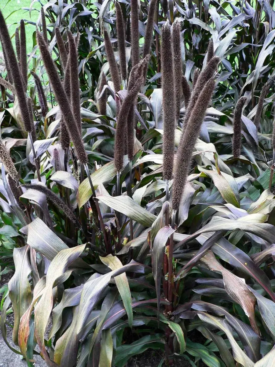 Пеннисетум *Purple Baron* пленяет взор своей изысканной декоративностью и благородством форм. Это травянистое растение образует плотную кустистую розетку изумрудно-зелёных узких листьев, слегка волнистых по краям и покрытых нежной серебристо-фиолетовой дымкой, придающей растению таинственный шарм. Листья постепенно приобретают насыщенный пурпурный оттенок ближе к осени, создавая контраст с золотистыми оттенками окружающих растений. Цветёт пеннисетум эффектными пушистыми метёлками длиной до 45 см, состоящими из множества мелких цветков тёмно-пурпурного цвета, словно бархатные кисти, возвышающиеся над листвой подобно элегантному султану. Растение предпочитает солнечные места, хорошо дренированные почвы и умеренное увлажнение, быстро разрастаясь и формируя живописные группы, способные украсить любой садовый ансамбль.