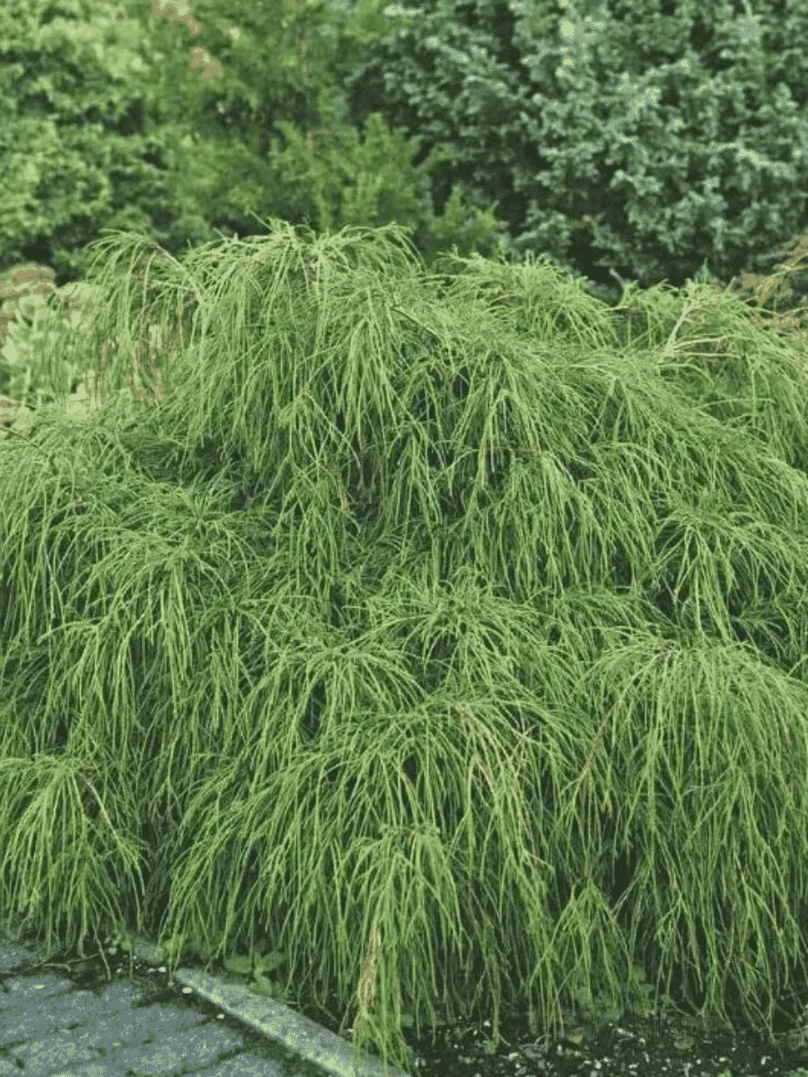 Кипарисовик горохоплодный Filifera представляет собой стройную пирамидальную хвойную породу с густой кроной, состоящей из тонких нитевидных веточек, свисающих каскадом подобно зелёному кружеву. Его игловидные листья мелкие, мягкие, нежно-зелёной окраски, слегка голубоватого оттенка, придающие растению воздушность и лёгкость. Растёт медленно, достигая высоты до нескольких метров, сохраняя компактную форму даже во взрослом состоянии. Цветение практически незаметно, поскольку растение размножается семенами, заключёнными в миниатюрные шишечки, едва различимые среди густых хвоинок. Предпочитает влажные почвы и полутень, широко используется в ландшафтном дизайне благодаря своей декоративности и способности создавать живописные акценты в садах и парках.