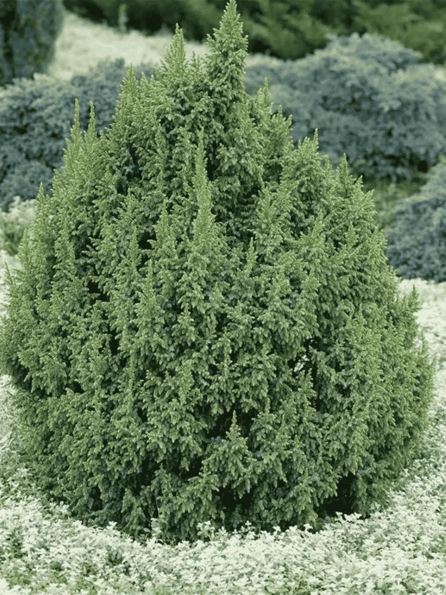 Можжевельник чешуйчатый Loderi — вечнозелёный кустарник благородной внешности, отличающийся компактностью форм и изысканной декоративностью кроны. Его густые ветви покрыты мелкими, плотно прижатыми друг к другу листьями-чешуйками изумрудно-зелёного оттенка, придающими растению элегантную строгость и утончённую красоту. Крона имеет аккуратную пирамидальную форму, постепенно расширяющуюся книзу, создавая впечатление стройности и лёгкости. Цветёт растение едва заметно, раскрывая мелкие невзрачные цветки весной среди густой зелени хвои. Этот можжевельник предпочитает солнечные места и хорошо дренированные почвы, демонстрируя устойчивость к засухе и морозу. Благодаря своей неприхотливости и привлекательному внешнему виду, он широко используется в ландшафтном дизайне парков и садов, украшая собой аллеи и композиции каменистых садов, где подчёркивает свою природную гармонию и очарование.