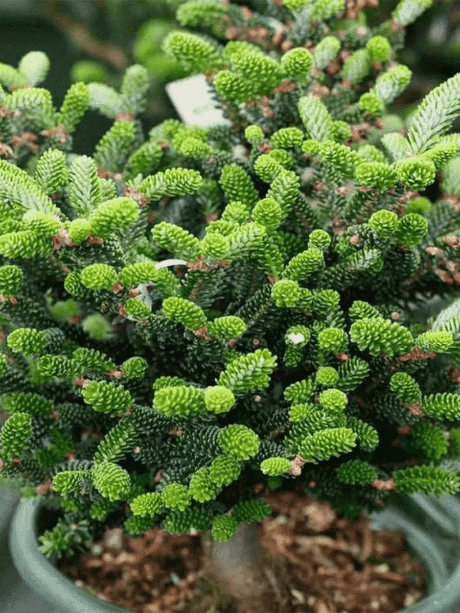 Пихта корейская 'Oberon' представляет собой стройную пирамидальную красавицу с густым ветвлением и плотной кроной, достигающей высоты до пяти метров. Её ветви расположены горизонтально, слегка свисают книзу, придавая дереву благородство и величие. Иглы короткие (около сантиметра), мягкие на ощупь, блестящие тёмно-зелёные сверху и серебристо-голубые снизу, создают эффект переливающейся бархатистости. Весной дерево украшается небольшими фиолетово-сиреневыми шишечками, придающими особую декоративность. Растёт медленно, предпочитая солнечные места и плодородные почвы, устойчива к городским условиям и зимним холодам умеренного климата. Благодаря своей элегантности и неприхотливости пихта 'Oberon' широко используется в ландшафтном дизайне парков, садов и частных участков, где она становится истинным украшением пространства.