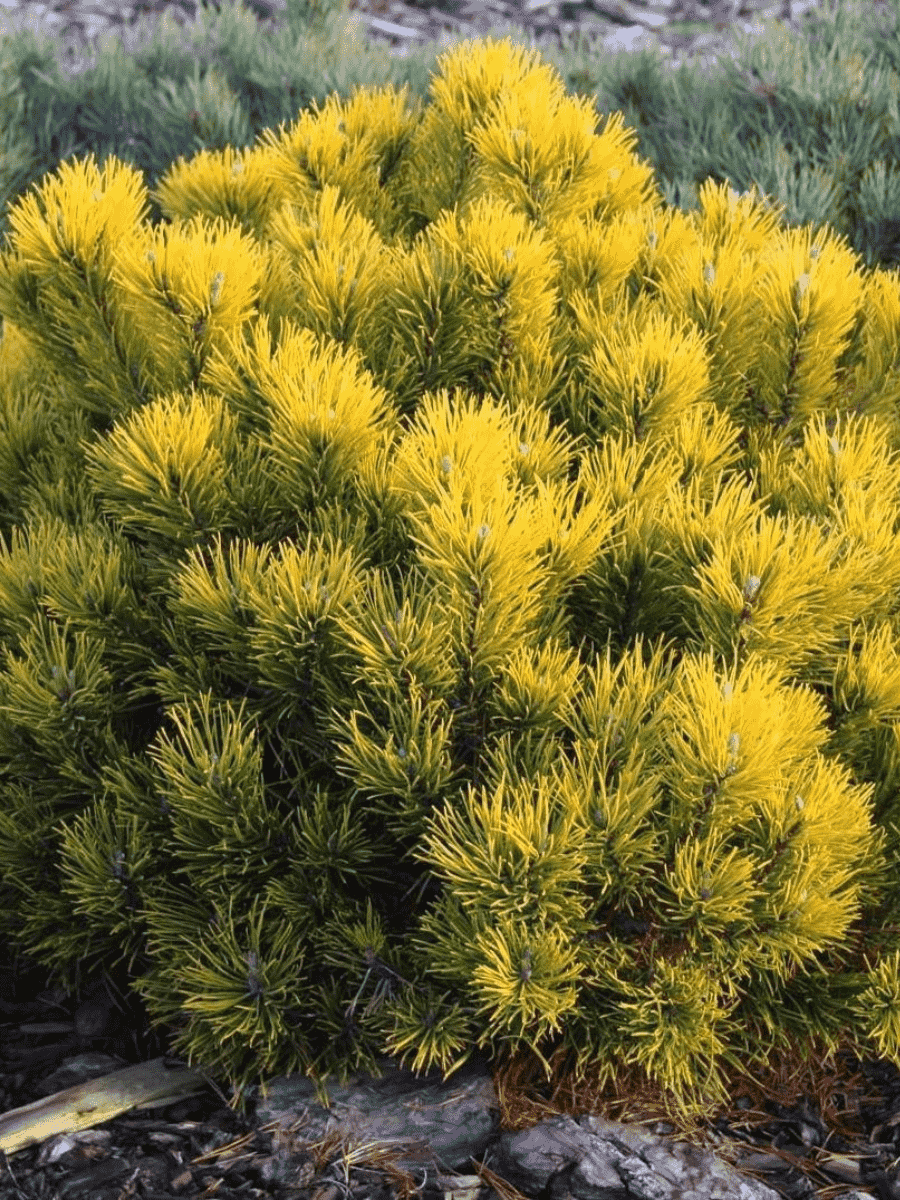 Сосна горная Dezember Gold — миниатюрное хвойное деревце, покоряющее сердца садоводов своей изысканной красотой и благородством форм. Её густые ветви образуют аккуратную округлую крону, словно бережно уложенную рукой искусного мастера. Иглы короткие, плотные, насыщенно-зелёные летом и приобретающие золотисто-жёлтый оттенок осенью, создавая живописную игру красок среди осеннего сада. Растёт медленно, ежегодно прибавляя лишь несколько сантиметров, сохраняя компактность даже спустя годы. Цветение скромное, незаметное, однако именно декоративность кроны делает её настоящей жемчужиной ландшафтного дизайна. Прекрасно переносит суровые зимы и засушливые периоды, неприхотлива к почвенным условиям, легко адаптируется к различным климатическим зонам. Идеальна для небольших участков, рокариев, альпинариев и контейнерного озеленения, где она становится центром притяжения восхищённых взглядов.