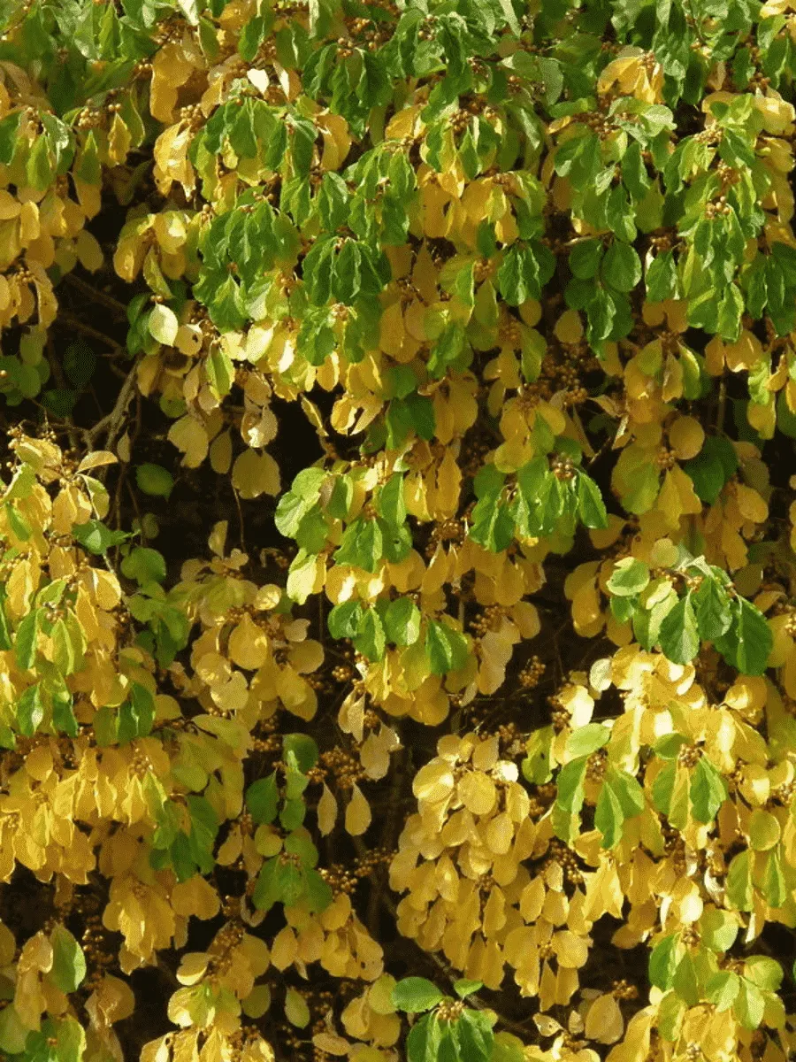 Древогубец круглолистный (*Celastrus orbiculatus*) — элегантная лиана, покоряющая своей живописной красотой и удивительной пластичностью. Стебли тонкие, гибкие, легко обвивающие стволы деревьев и кустарников, словно нежные объятия, стремящиеся вверх к солнечному свету. Листья округлые, плотные, насыщенно-зелёные летом, осенью же приобретают яркие оттенки жёлтого и оранжевого, превращаясь в настоящее украшение осеннего леса. Цветки мелкие, невзрачные, собраны в небольшие кисти, едва заметны среди густой зелени, однако именно они служат началом жизни будущих семян. Растёт древогубец преимущественно во влажных лесах Дальнего Востока России, предпочитая тенистые места вдоль рек и ручьёв, где почва богата питательными веществами и влагой. Его присутствие придаёт лесу особую атмосферу таинственности и очарования, подчёркивая гармонию природы и её бесконечное разнообразие форм и красок.