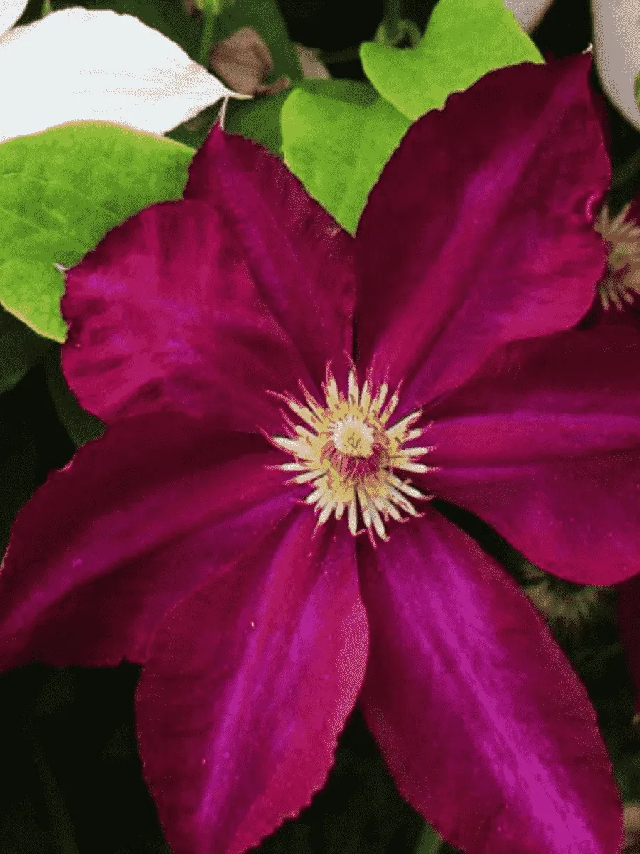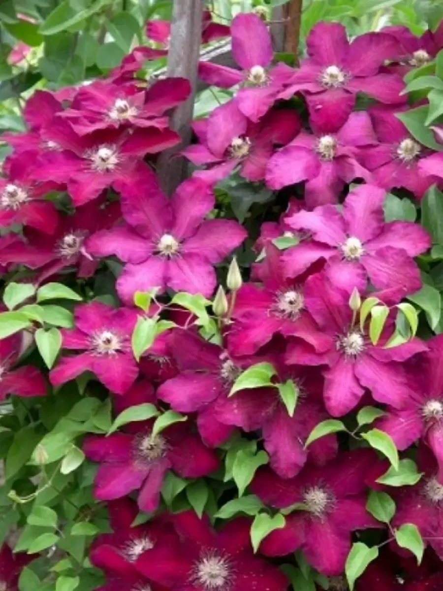 Клематис гибридный *Mazowsze* пленяет взор роскошной кроной густых зелёных побегов, украшенных крупными сердцевидными листьями насыщенного изумрудного оттенка, слегка волнистыми по краям и покрытыми нежным бархатистым пушком. Цветки поражают своей величественной красотой: крупные (до 15 см), широко раскрытые, нежно-розовые лепестки плавно переходят от светлого центра к тёмному краю, создавая эффект градиента, словно художник бережно смешал краски на палитре. Сердце цветка украшают многочисленные тычинки золотисто-жёлтого цвета, придающие особую изысканность композиции. Этот клематис отличается мощным ростом, быстро покрываясь густой массой лиан, стремящихся вверх, цепляясь крепкими усиками за любую опору. Его аромат лёгкий, едва уловимый, наполняющий воздух свежестью весеннего сада. Растёт преимущественно в умеренных широтах Европы, предпочитая солнечные места с плодородной почвой, где раскрывается во всей красе, радуя глаз пышностью цветения и элегантностью форм.