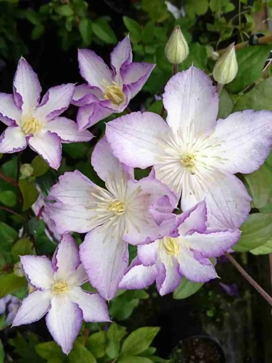 Клематис *Lucky Charm* пленяет взор роскошной зеленью и пышностью цветения. Его побеги длинные, гибкие, легко цепляются за опоры благодаря тонким усикам, формируя живописную зелёную завесу. Листья перистые, состоят из нескольких овальных листочков с зубчатыми краями, окрашены в насыщенный тёмно-зелёный оттенок, придающий растению свежесть и благородство облика. Цветки крупные, диаметром около десяти сантиметров, распускаются обильно, покрывая растение густым ковром ярких красок. Лепестков пять-шесть, широкие, бархатистые, нежно-розового цвета с лёгким пурпурным оттенком, который усиливается ближе к центру цветка, создавая эффект градиента. Сердцевина украшена многочисленными тычинками золотисто-жёлтого оттенка, контрастирующими с лепестками и подчёркивающими изысканность соцветий. Период цветения продолжительный, начинается в июне и длится до конца лета, наполняя сад нежностью и очарованием. Растёт быстро, неприхотлив, предпочитает солнечные места и плодородные почвы, прекрасно адаптируется к различным условиям выращивания, радуя садоводов своей красотой и декоративностью долгие годы.