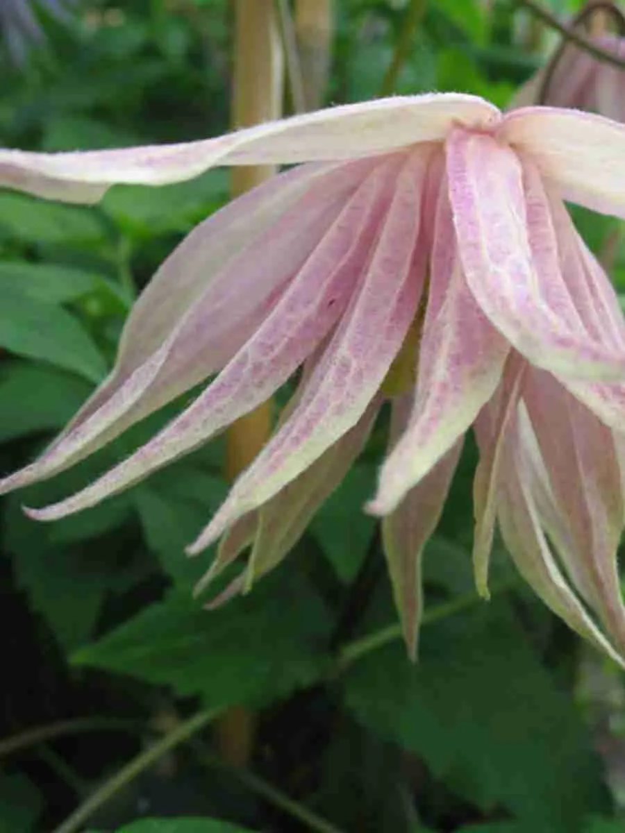 Клематис *Pink Swing* пленяет взор нежностью розово-персиковых оттенков своих крупных цветков, достигающих диаметра до десяти сантиметров, украшенных волнистыми лепестками, словно легкими взмахами кисти художника. Листья растения имеют насыщенно-зелёную окраску, сложную перистую структуру и слегка блестящую поверхность, подчёркивая изысканность облика. Этот сорт отличается энергичным ростом, быстро покрываясь пышной массой лиан, стремящихся вверх, цепляясь тонкими усиками за любую опору. Цветёт обильно и продолжительно, начиная с конца весны и вплоть до первых осенних заморозков, наполняя сад волшебством своего цветения и очарованием утончённой красоты.