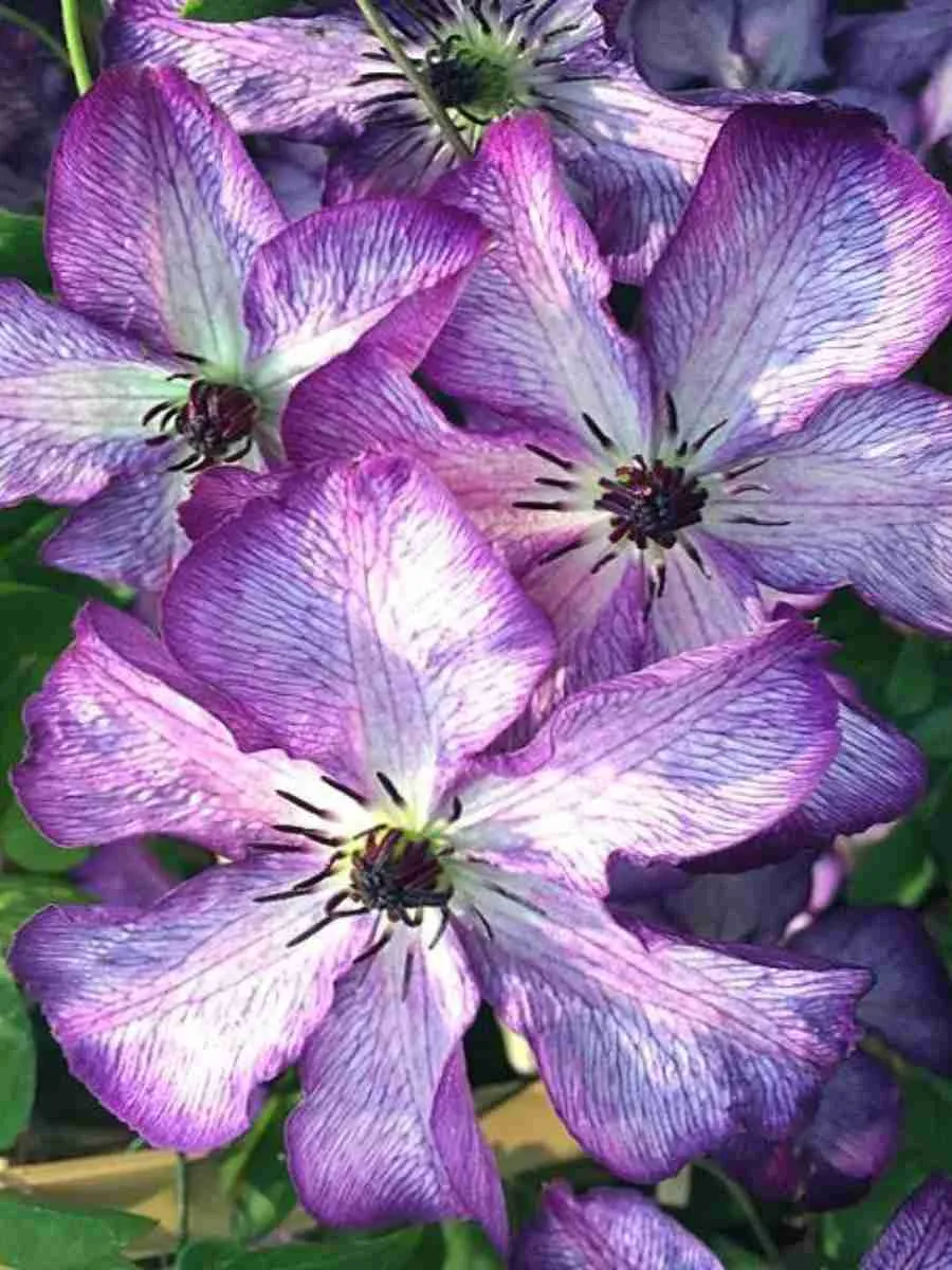 Клематис сорта *Super Nova* пленяет взор роскошной кроной густых зелёных побегов, украшенных крупными сердцевидными листьями насыщенного изумрудного оттенка, слегка волнистыми по краям и покрытыми нежным бархатистым пушком. Цветки поражают своей величественной красотой: крупные (до 15 см), махровые, словно пышная роза, лепестки переливаются оттенками от нежно-кремового до золотисто-жёлтого цвета, создавая впечатление сияния солнца среди зелени сада. Бутоны раскрываются постепенно, демонстрируя градацию оттенков от бледно-золотистого центра к кремовым краешкам лепестков. Растёт быстро, легко взбираясь вверх по шпалерам и решёткам благодаря крепким усикам, формируя живописную живую ширму высотой до трёх метров. Этот клематис предпочитает солнечные места, плодородные почвы и умеренный полив, радуя садоводов своим продолжительным цветением с июня по сентябрь.