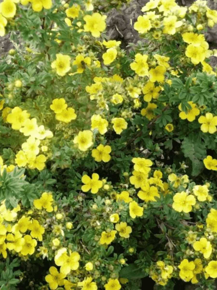 Лапчатка кустарниковая сорта *Gigant* представляет собой эффектный декоративный полукустарник высотой до полутора метров с раскидистыми ветвями, покрытыми густой листвой насыщенного зелёного цвета. Листья лапчатки крупные, пальчато-рассечённые, состоят из пяти-семи овальных листочков с зубчатыми краями, придающих растению особую воздушность и лёгкость. Цветёт обильно и продолжительно, начиная с июня и заканчивая первыми заморозками, покрываясь крупными одиночными цветами диаметром около восьми сантиметров, собранными в рыхлые соцветия. Лепестки цветков яркие, золотисто-жёлтые, бархатистые, словно солнечные лучи, притягивающие взгляд своей нежностью и теплотой. Кустарник отличается устойчивостью к неблагоприятным условиям среды, неприхотливостью и способностью быстро разрастаться, формируя живописную живую изгородь или солитерное растение в саду.