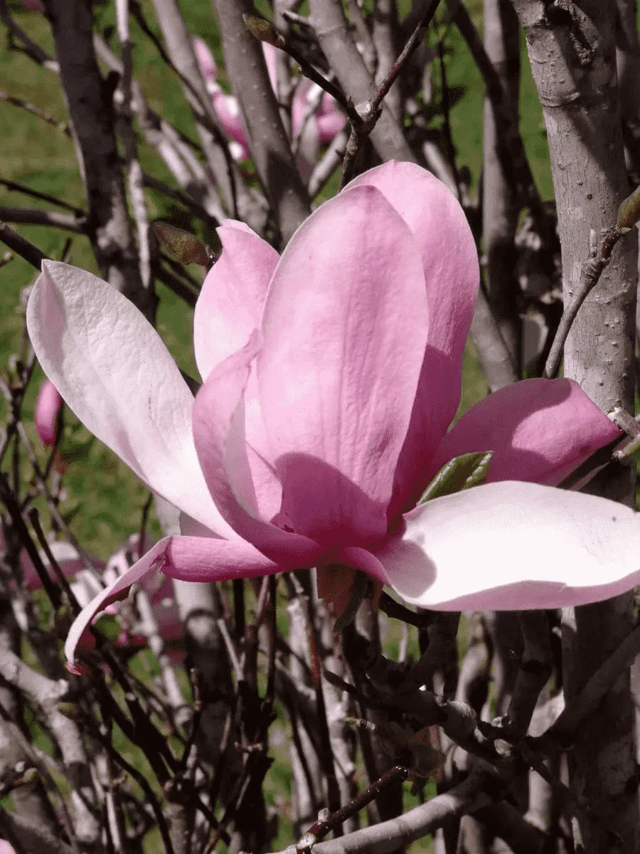 Большой кустарник или небольшое дерево с округлой низкопосаженной кроной. Вырастает до 3-4 м в высоту и ширину. Листья тёмно-зеленые, эллиптические, заострённые. Цветки крупные, до 15 см диаметром, светло-фиолетовые снаружи и белые внутри, состоят из 12 лепестков, ароматные. Цветение обильное, в начале мая, до распускания листьев. Место солнечное и защищённое от холодного ветра. Почва дренированная, слабокислая, богатая органикой, равномерно увлажнённая в течение года. Рекомендуется мульчировать приствольный круг и не сажать в него другие растения. Морозостойкость до –23ºС.