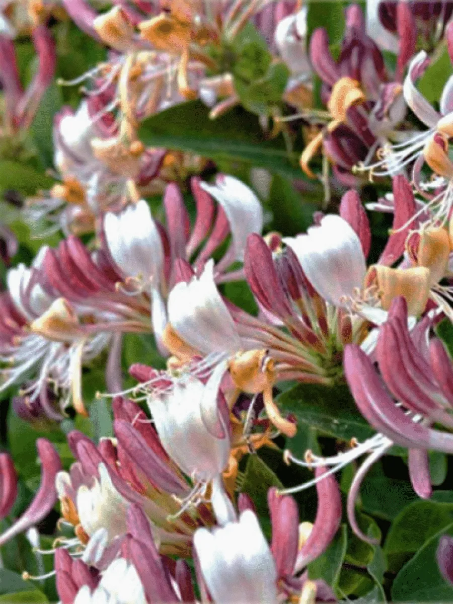 Жимолость каприфоль (*Lonicera caprifolium*) пленяет взор нежностью своего облика и ароматом цветов, словно воплощением весеннего вдохновения природы. Это лиановидное растение с гибкими побегами, покрытыми гладкой корой, легко взбирается вверх, цепляясь за опоры своими тонкими ветвями. Листья овально-ланцетной формы, слегка заострённые на концах, окрашены в насыщенный зелёный оттенок, создавая живописную зелень даже в тени. Но истинная красота раскрывается во время цветения: крупные трубчатые цветы нежно-розового цвета с золотистым отливом распускаются гроздьями вдоль стеблей, источая тонкий аромат ванили и мёда. Цветение продолжается долго, радуя глаз и привлекая насекомых своим сладким нектаром. Растёт быстро, охотно осваивая новые пространства, предпочитая влажные почвы и полутень, где чувствует себя особенно комфортно и пышно развивается.
