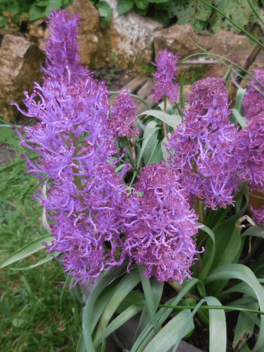 Мускари Плумозум (Muscari plumosum), также известный как Перистый мускари, пленяет взор своей изысканной красотой и утончённостью форм. Это миниатюрное растение высотой всего около десяти сантиметров обладает нежнейшими перисто-разделёнными листьями изумрудной окраски, придающими растению воздушность и лёгкость. Цветки собраны в рыхлые кистевидные соцветия, состоящие из множества мелких звёздчатых цветков нежно-голубого оттенка, словно сотканных из прозрачной утренней дымки. Бутоны раскрываются постепенно снизу вверх, создавая впечатление медленно распускающегося цветка. Период цветения приходится на раннюю весну, когда природа ещё только просыпается от зимнего сна. Растёт преимущественно на солнечных участках, предпочитая плодородную почву и умеренный полив. Благодаря своему декоративному виду широко используется в ландшафтном дизайне, украшая альпийские горки, рокарии и миксбордеры.