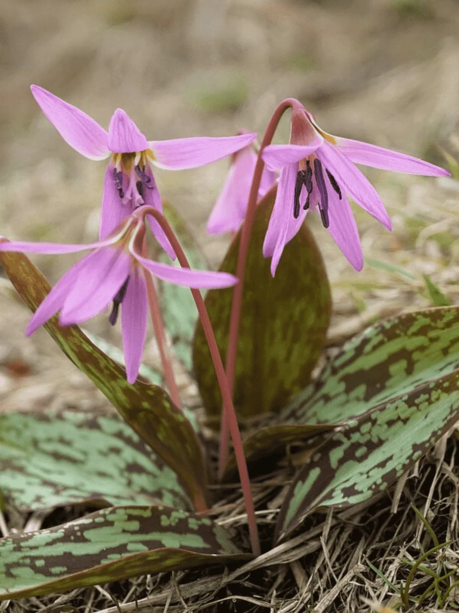 Эритрониум Денс-Канис, известный также как кандык собачий зуб, пленяет взор нежностью весеннего цветения и утончённостью форм. Это многолетнее травянистое растение семейства лилейных отличается элегантной простотой облика: два широких, продолговатых листа тёмно-зелёного цвета украшены серебристо-серым мраморным узором, словно драгоценная парча, лежащая на лесной подстилке. Из середины розетки поднимается тонкий стебель высотой до тридцати сантиметров, увенчанный крупным колокольчатым цветком нежно-розового оттенка, переходящего в белый ближе к центру лепестков. Цветки распускаются ранней весной, когда лес ещё погружён в сон зимнего покоя, наполняя воздух тонким ароматом свежести и чистоты. Корневище клубнеобразное, плотное, напоминает формой небольшой собачий зуб, давший название растению. Кандык предпочитает тенистые места хвойных лесов, влажную плодородную почву и встречается преимущественно в горных районах Европы и Кавказа, радуя глаз редкими вспышками красоты среди серых оттенков апрельского леса.