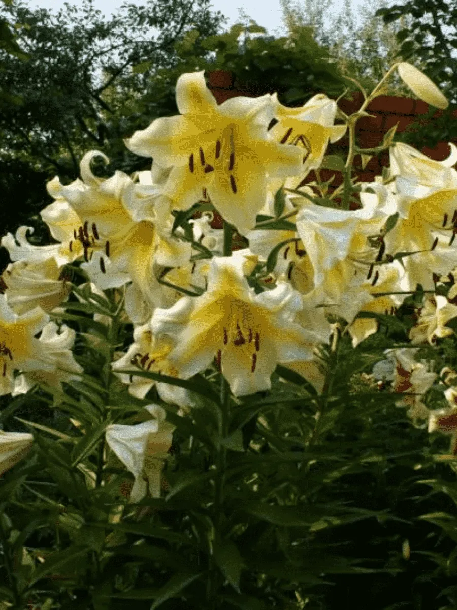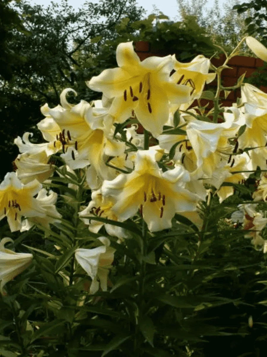 Лилия сорта *Conca d'Or* пленяет взор изысканным благородством золотисто-жёлтых цветков, словно чашечки, наполненные солнечным светом. Её крупные бутоны раскрываются навстречу солнцу, демонстрируя нежную кремовую середину, украшенную едва заметной сеточкой тонких пурпурных штрихов. Листья узколанцетные, тёмно-зелёные, гладко блестящие, расположены вдоль стройного стебля высотой до полутора метров, подчёркивая элегантность облика. Цветёт обильно и продолжительно, начиная с середины лета, наполняя сад тонким ароматом, который привлекает внимание насекомых-опылителей. Предпочитает плодородные почвы и солнечные места, легко адаптируется к умеренному климату средней полосы России, радуя садоводов своей неприхотливостью и декоративностью долгие годы.