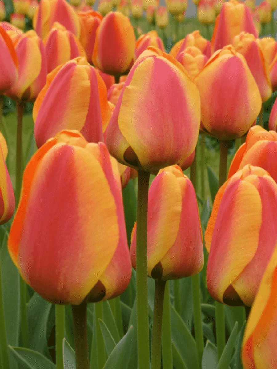 Тюльпан сорта *Apeldoorn* пленяет взор своей элегантностью и благородством форм. Высокий стройный стебель венчается крупным бокаловидным цветком насыщенного оранжево-красного оттенка, словно пламя свечи, горящее среди зелени весеннего сада. Листья удлинённые, гладкие, тёмно-зелёные, слегка блестящие, подчёркивающие яркость цветка. Цветёт обильно и продолжительно, радуя глаз яркими красками ранней весной. Растение предпочитает солнечные места, хорошо дренированные почвы и умеренный полив. Этот сорт тюльпана широко распространён в ландшафтном дизайне благодаря своему эффектному внешнему виду и неприхотливости в уходе.