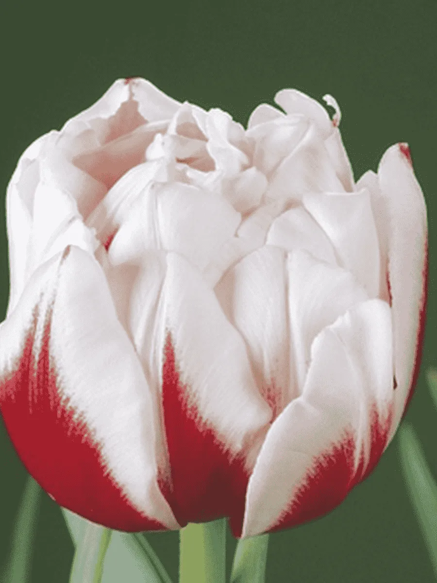 Тюльпан махровый *Horizon* пленяет взор своей изысканной красотой и нежностью форм. Его крупные цветки раскрываются пышной чашей, состоящей из множества лепестков, словно сотканных из тонкого шелка. Лепестки окрашены в благородную белоснежность, слегка оттенённую лёгким кремовым налетом, придающим цветкам особую воздушность и утончённость. Листья тюльпана широкие, гладкие, насыщенно-зелёного цвета, подчёркивающие элегантность цветка своим контрастом. Высота стебля достигает около сорока сантиметров, позволяя растению уверенно возвышаться над поверхностью почвы. Цветёт этот великолепный представитель семейства лилейных ранней весной, радуя глаз яркими красками после долгой зимы. Предпочитает солнечные места и плодородные рыхлые почвы, распространён преимущественно в садах и парковых композициях, где становится истинным украшением весеннего ландшафта.