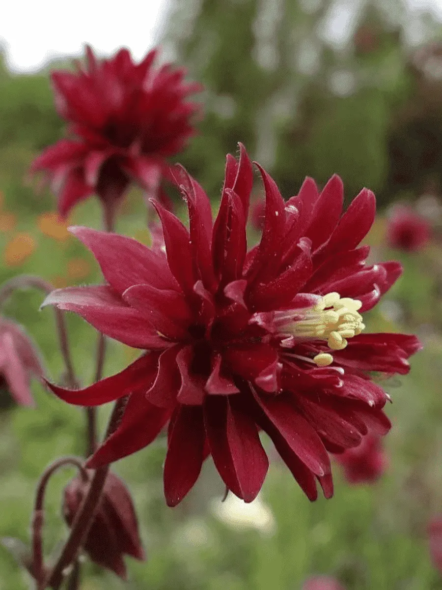 Аквилегия обыкновенная сорта Барлоу Бордо (Aquilegia vulgaris 'Barlow Bordeaux') пленяет взор изысканным сочетанием благородной формы и утончённой окраски. Её ажурные листья, рассечённые на узкие сегменты, словно кружево, создают лёгкую воздушную зелень, оттеняя роскошь цветков. Цветки бархатисто-тёмно-бордового цвета, крупные и элегантные, венчают стройные стебли высотой около полуметра, возвышаясь над листвой подобно миниатюрным фонарикам. Лепестки слегка загнуты назад, открывая взору длинные шпорцы, придающие растению особую декоративность. Этот сорт предпочитает полутень и умеренно влажные почвы, прекрасно размножается самосевом, создавая живописные островки среди тенистых уголков сада. Его цветение начинается в конце весны и продолжается до середины лета, наполняя пространство чарующим ароматом и притягивая внимание своей аристократической красотой.