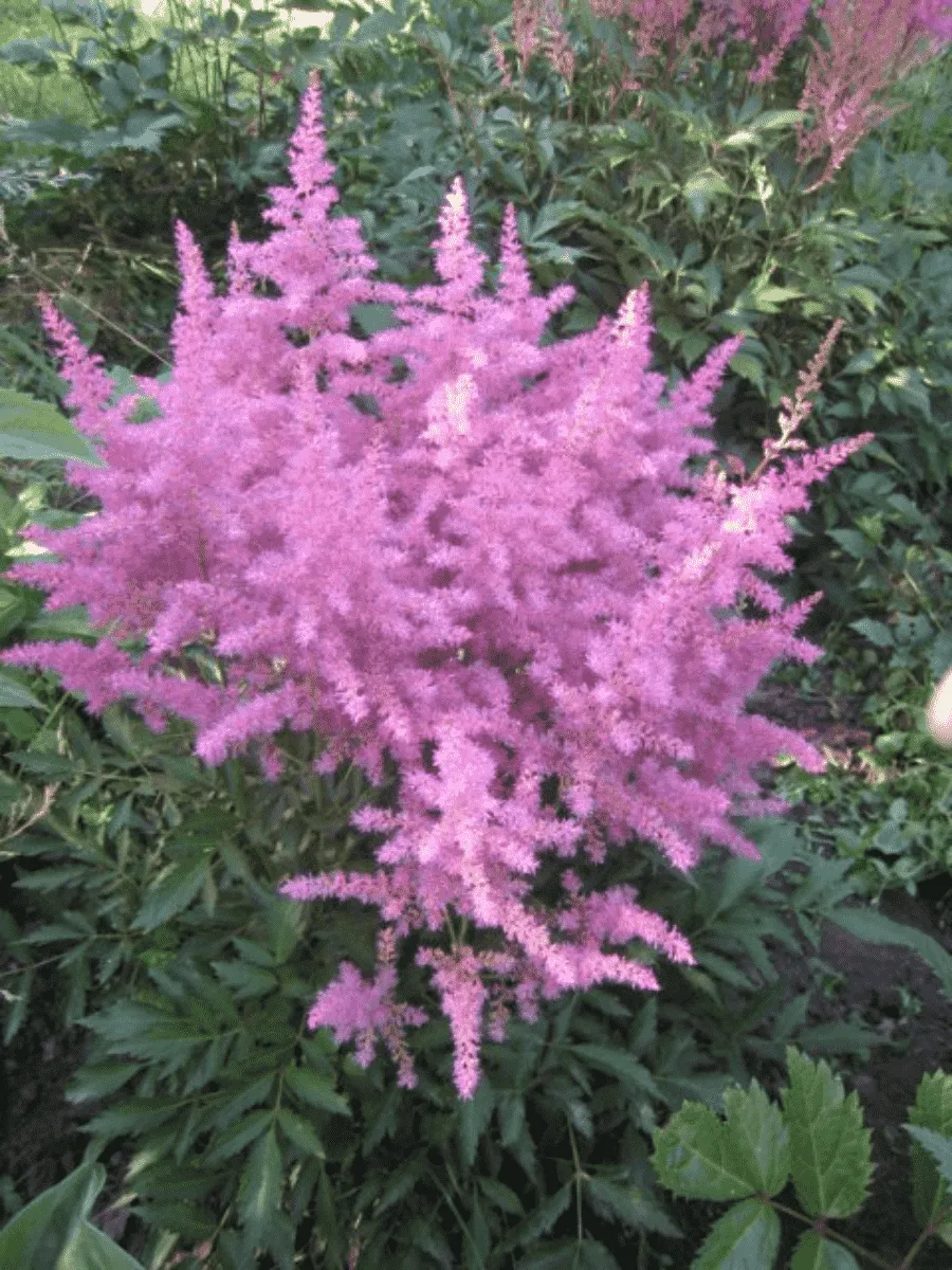 Астильба гибридная сорта *Younique Lilac* пленяет взор нежностью пастельных оттенков и утончённой грацией своего облика. Это многолетнее травянистое растение образует компактную пышную куртину высотой около полуметра, украшенную крупными перисто-рассечёнными листьями насыщенного тёмно-зелёного цвета с глянцевой поверхностью и чётко выраженными жилками. Листья расположены на длинных черешках, придавая растению лёгкость и воздушность. Но истинной жемчужиной астильбы становятся её соцветия-метёлки, появляющиеся летом и сохраняющие декоративность до осени. Они состоят из множества мелких цветков нежно-лилового оттенка, собранных в рыхлые пирамидальные кисти длиной до тридцати сантиметров. Цветение длится долго, постепенно раскрываясь снизу вверх, создавая эффект постепенной смены красок от светлого лилового до чуть розоватого тона. Растёт астильба быстро, легко размножается делением корневища и прекрасно адаптируется к полутени влажных мест, предпочитая плодородные почвы и регулярный полив. Её изысканная красота делает сорт идеальным выбором для тенистых садов, рокариев и миксбордеров, где она создаёт атмосферу спокойствия и гармонии.
