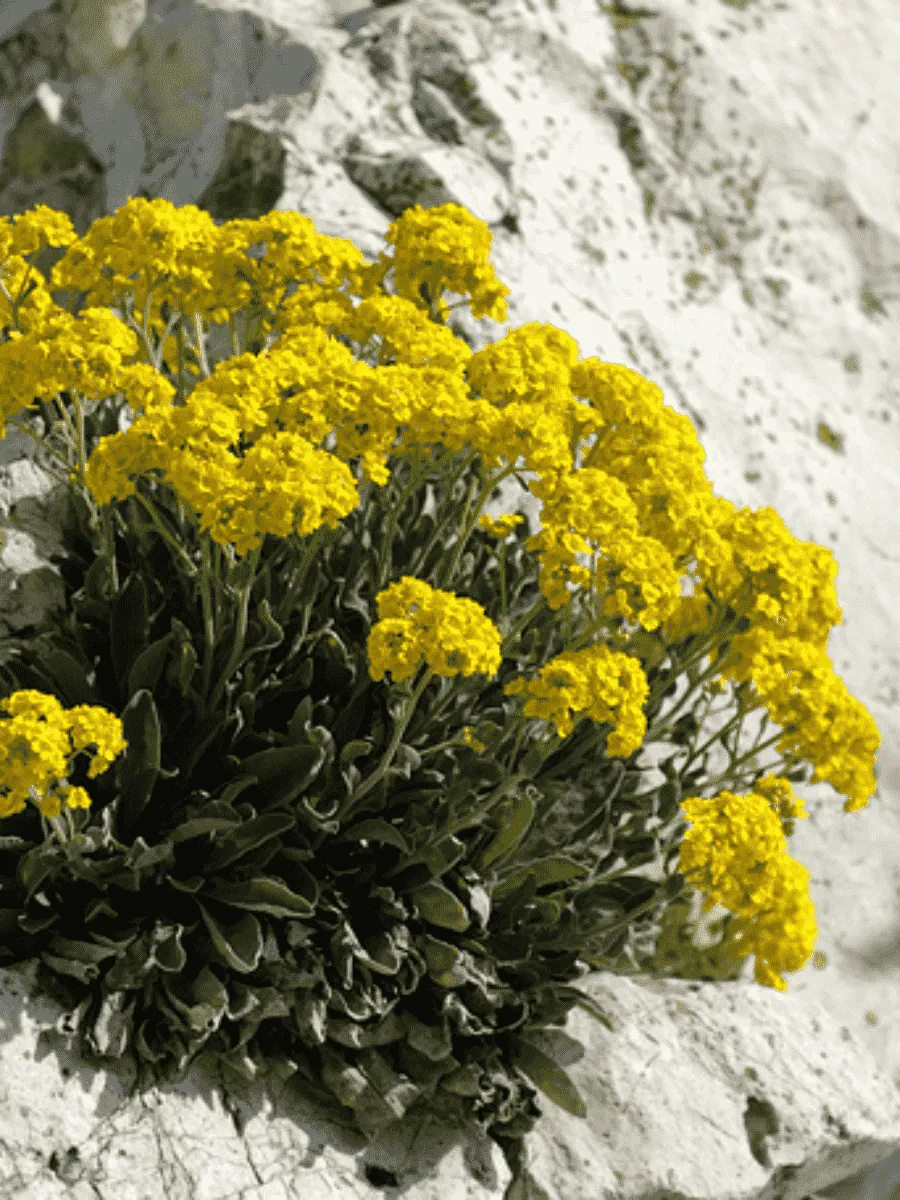 Ауриния скальная сорта *Gold Cushion* — очаровательное многолетнее растение с компактной формой роста, идеально подходящее для каменистых садов и альпийских горок. Её густые подушки состоят из мелких серебристо-зелёных листочков овальной формы, покрытых нежным пушком, придающим растению бархатистый блеск. Листья образуют плотную розетку, словно миниатюрная золотистая подушка, укрывающая почву мягким ковром. Цветёт обильно мелкими ярко-жёлтыми цветами, собранными в соцветия-головки, украшая сад солнечными пятнами с конца мая до начала июля. Растение предпочитает солнечные места и хорошо дренированные почвы, легко переносит засуху и морозы, создавая живописные композиции среди камней и гравийных дорожек.