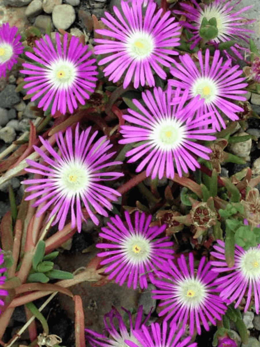 Делосперма обильноцветущая *Starburst* — очаровательное суккулентное растение родом из Южной Африки, покорившее сердца садоводов своей удивительной декоративностью и неприхотливостью. Это компактная многолетняя культура с сочными мясистыми листьями насыщенно-зелёного цвета, слегка вытянутых очертаний, придающих растению особую свежесть и живость. Но истинную славу ей приносит роскошное цветение: многочисленные яркие звёздчатые цветки диаметром до трёх сантиметров покрывают кустики густым ковром, словно рассыпанные драгоценности. Лепестки цветков окрашены в нежнейшие оттенки розового, пурпурного и белого цветов, переливаясь всеми оттенками радуги и создавая незабываемое зрелище. Растёт быстро, легко разрастается, формируя плотные куртины высотой всего около десяти сантиметров, идеально подходящие для рокариев, бордюров и контейнерных посадок. Благодаря способности сохранять влагу в листьях, она прекрасно переносит засуху и жаркое солнце, становясь настоящим украшением сада даже в самые сухие летние дни.