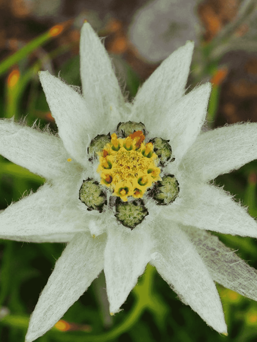 Эдельвейс Souliei (Leontopodium souliei), этот гордый обитатель альпийских лугов, пленяет взор своей изысканной красотой и благородством облика. Стебли тонкие, покрытые нежной серебристо-войлочной опушкой, поднимаются над землей на высоту до 15 см, увенчанные компактными розетками узких линейных листочков серовато-зелёного оттенка, словно облачённых в мягкий пушистый покров. Цветки мелкие, жёлтовато-белые, собраны в плотные корзинки, окружённые многочисленными белыми лучистыми листьями-обёртками, придающими соцветиям характерную звёздчатую форму и воздушность. Растёт небольшими группами среди камней и скал, предпочитая сухие каменистые почвы высокогорья, где царит прохлада и чистота горных ветров. Этот символ стойкости и чистоты очаровывает своим скромным величием и неподражаемой грацией, воплощая собой дух суровых вершин и вдохновляя поэтов и художников уже многие века.