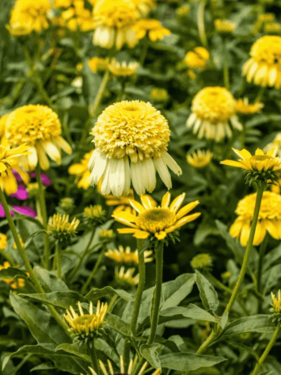 Эхинацея пурпурная сорта *Lemon Drop* пленяет взор нежностью лимонно-жёлтых лепестков, контрастирующих с тёмной сердцевиной соцветий, словно солнечные лучи застряли среди бархатных тычинок. Листья овально-ланцетные, слегка шероховатые, насыщенно-зелёные, придают растению благородную строгость и подчёркивают изысканность цветков. Стройные стебли высотой до метра несут крупные корзинки диаметром около восьми сантиметров, возвышаясь над листвой подобно золотистым фонарикам. Цветёт обильно и продолжительно, начиная с июля и заканчивая первыми заморозками, привлекая пчёл и бабочек своим ароматом и ярким обликом. Предпочитает хорошо дренированные почвы и солнечное местоположение, легко адаптируется к различным климатическим условиям, украшая сады и парки своей жизнерадостной красотой.