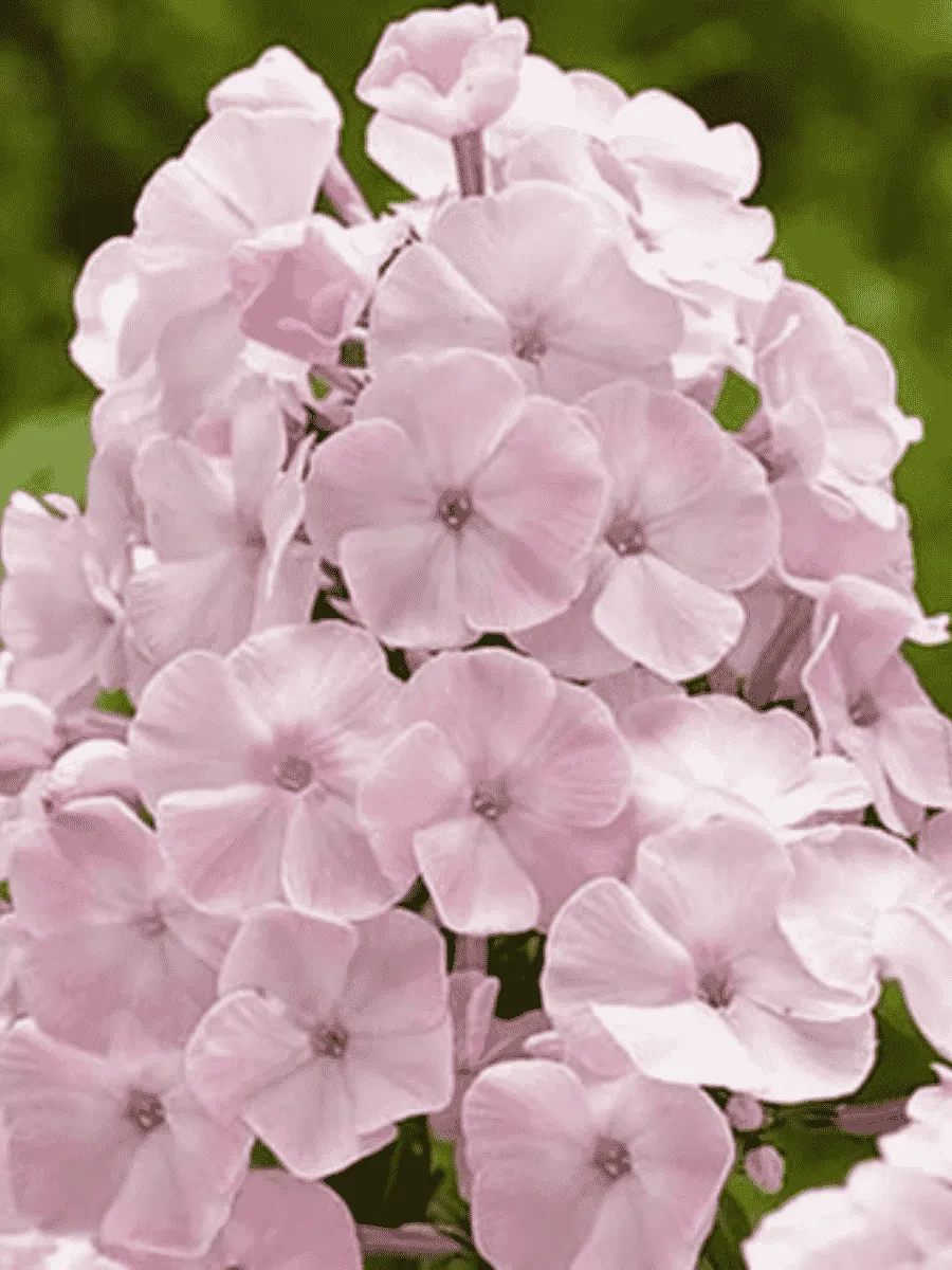 Флокс метельчатый Елена — изысканное многолетнее растение с прямостоячими крепкими стеблями высотой до метра, покрытыми нежной бархатистостью мелких волосков. Листья ланцетные, тёмно-зелёные, слегка блестящие, расположены супротивно вдоль всего стебля, создавая плотную зелёную массу. Цветки собраны в пышные многоцветковые соцветия-метёлки диаметром около двадцати сантиметров, состоящие из множества трубчатых цветков с пятью лепестками, нежно-розового оттенка с лёгким пурпурным отливом и едва заметным глазком в центре каждого цветка. Период цветения продолжительный, начинается в июне и длится до конца августа, наполняя сад тонким ароматом и привлекая внимание своей элегантностью и воздушностью. Растёт быстро, легко размножается делением куста и черенкованием, предпочитает солнечные места с плодородной рыхлой почвой, устойчиво переносит умеренные зимние морозы средней полосы России.
