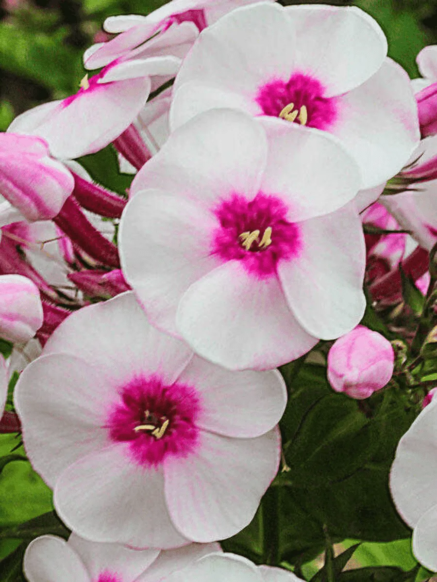 Флокс метельчатый сорта *Younique Trendy* пленяет взор своей изысканной красотой и нежностью цветения. Это многолетнее травянистое растение образует пышную кустистую крону высотой около полуметра, украшенную крупными темно-зелеными листьями ланцетной формы с гладкой поверхностью и слегка волнистыми краями. Цветки собраны в густые пирамидальные соцветия-метёлки диаметром до 15 см, состоящие из множества мелких трубчатых цветков насыщенного сиреневого оттенка с едва заметным пурпурным отливом и ярко выраженным белым глазком в центре каждого цветка. Период цветения продолжительный, начинается в июне и длится до конца августа, наполняя сад тонким ароматом и создавая эффект воздушности благодаря легкости и ажурной структуре соцветий. Растение предпочитает солнечные места с плодородной рыхлой почвой, устойчиво к засухе и морозоустойчиво, легко размножается черенкованием и делением куста, быстро разрастаясь и формируя живописные группы, идеально подходящие для миксбордеров, бордюров и клумб.