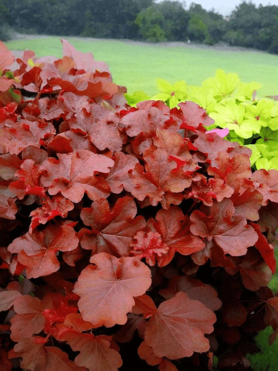 Гейхера сорта *Mahogany* пленяет взор роскошной листвой насыщенного шоколадно-коричневого оттенка с пурпурным отливом, словно переливающаяся поверхность полированного красного дерева. Листья крупные, сердцевидные, слегка волнистые по краям, образуют пышную розетку, радующую глаз своей декоративностью практически круглый год. Цветоносы возвышаются над листьями стройными свечками высотой до полуметра, увенчанные мелкими звездчатыми цветами нежно-розового цвета, источающими тонкий аромат. Растение предпочитает тенистые уголки сада, где почва богата гумусом и умеренно влажная, демонстрируя свою неприхотливость и способность адаптироваться даже в условиях умеренной тени. Благодаря компактности и элегантному облику гейхеру часто используют в бордюрах, рокариях и миксбордерах, создавая живописные композиции, подчеркивающие её природную красоту и утонченность.