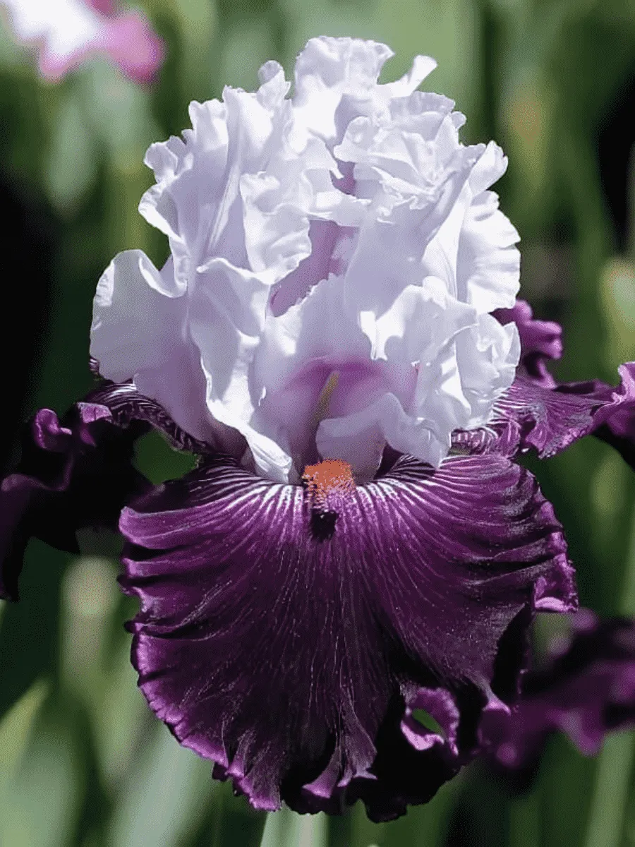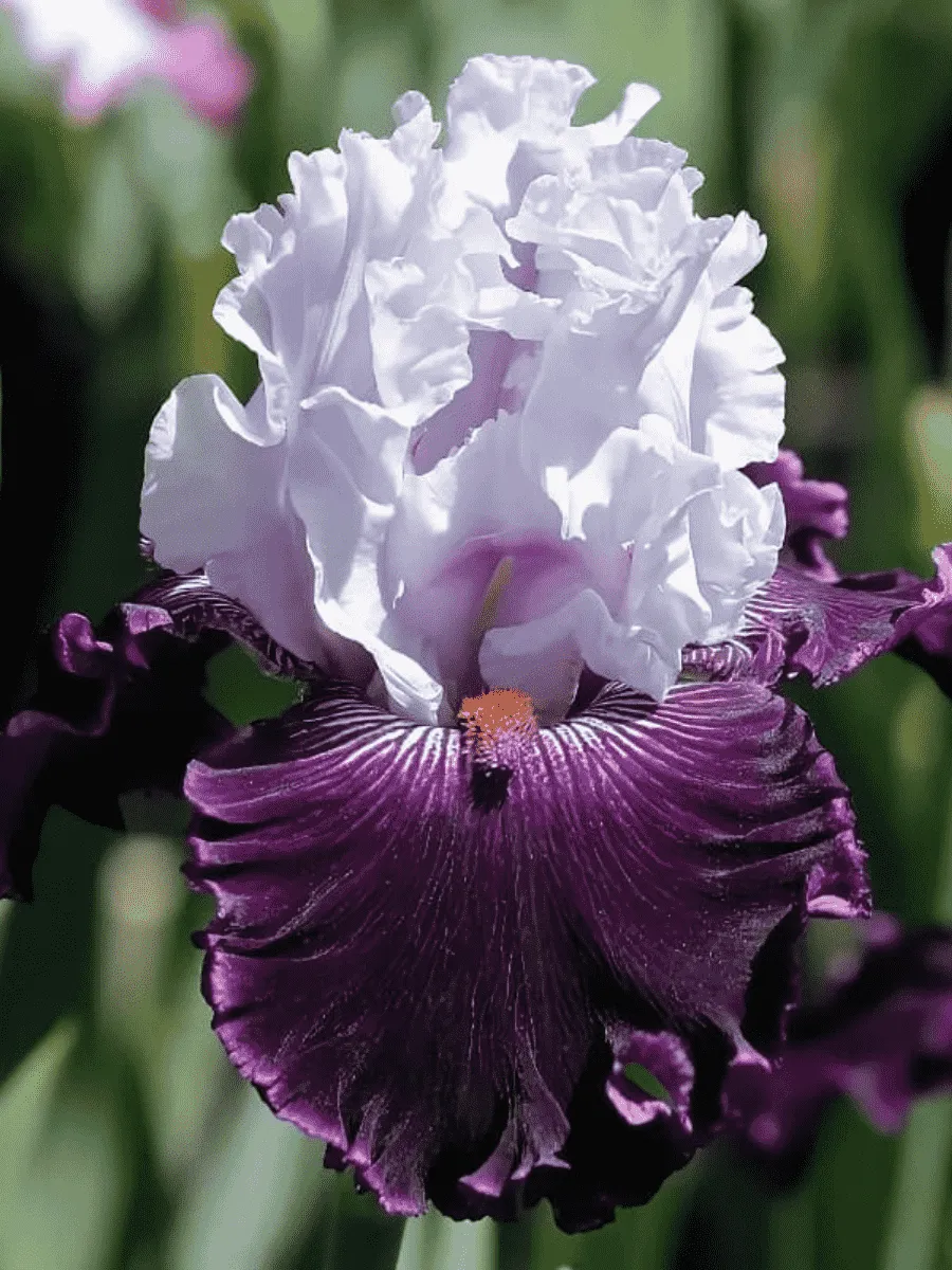 Ирис германский Blue Bird Wine пленяет взор своей утончённой красотой и благородством форм. Высокие стройные стебли достигают метра высоты, увенчанные крупными цветами насыщенного сине-фиолетового оттенка, переливающегося глубокими полутонами подобно дорогим винам. Листья узколинейной формы собраны в плотную прикорневую розетку, создавая живописный фон для роскошных соцветий. Цветки раскрываются постепенно, демонстрируя нежность бархатистых лепестков и элегантные контрастные бородки золотисто-жёлтого цвета. Растение предпочитает солнечные участки, хорошо дренированные почвы и умеренный полив, радуя садоводов своим пышным цветением в конце весны — начале лета. Этот сорт отличается устойчивостью к болезням и неприхотливостью в уходе, прекрасно вписываясь в ландшафтные композиции и украшая сады изысканным шармом старинных европейских парков.