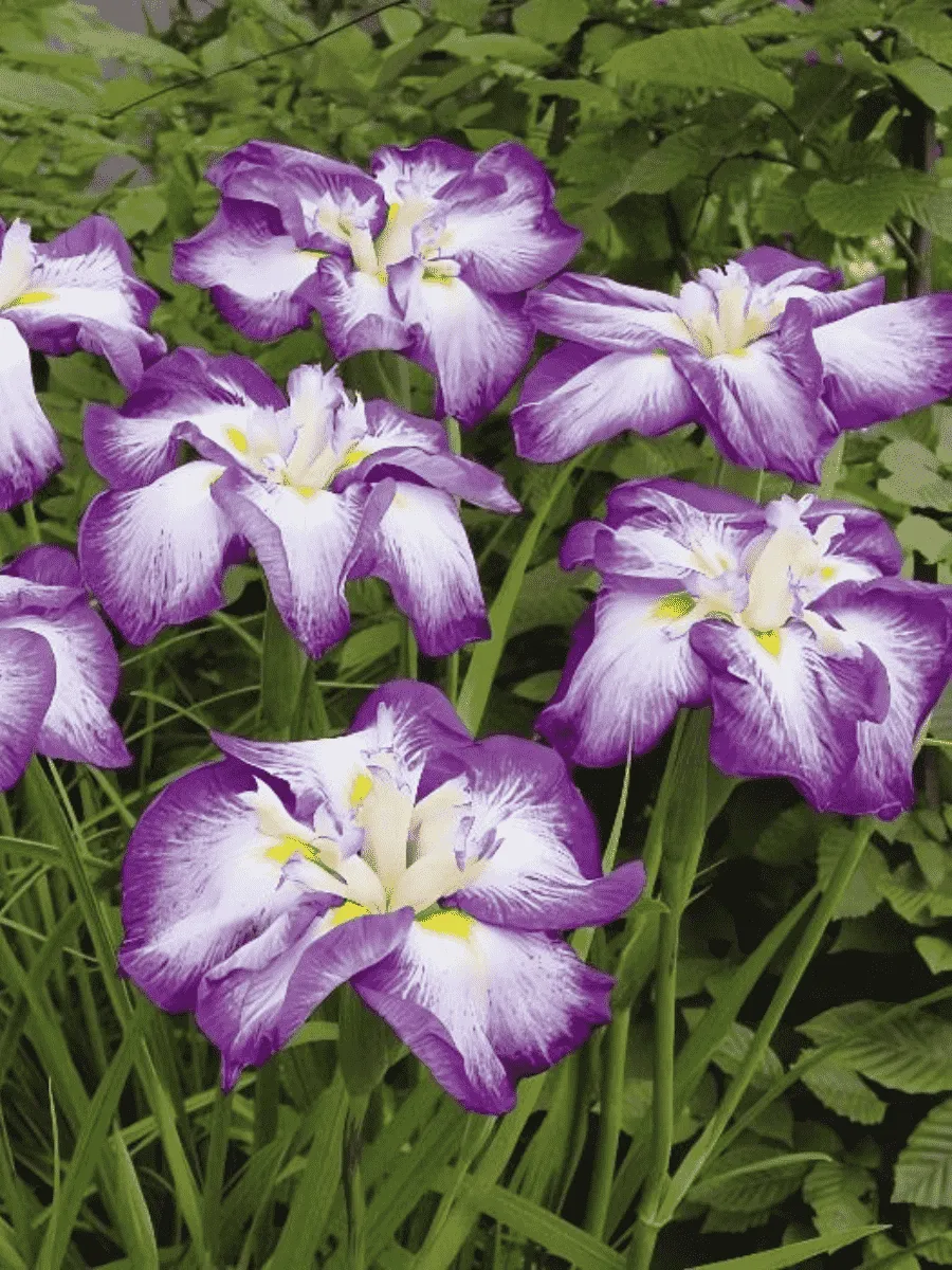 Ирис мечевидный Harlequinesque пленяет взор своей утончённой красотой и благородством форм. Его длинные, узколинейные листья, словно мечи древних воинов, устремлены вверх, создавая стройную зелёную композицию. Листья окрашены в насыщенный изумрудный оттенок, слегка блестящий от солнечного света, подчёркивая природную элегантность растения. Цветки распускаются крупными одиночными бутонами, возвышаясь над листвой на высоких прочных стеблях. Лепестки нежной формы, переливающиеся оттенками фиолетового, синего и белого цветов, создают впечатление изысканного фарфора, украшенного тонкой росписью. Сердцевина цветка выделяется контрастным жёлтым пятном, добавляя яркости и живости общему облику. Растёт ирис мечевидный преимущественно на влажных лугах и болотистых местах, предпочитая плодородные почвы и умеренное увлажнение. Этот декоративный многолетник очаровывает садоводов своим величественным видом и способностью украшать садовые композиции, придавая им особую атмосферу гармонии и красоты.