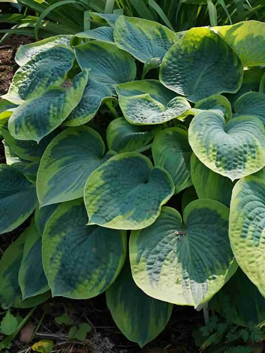 Хоста *Tokudama Flavocircinalis* пленяет взор своей изысканной красотой и благородством форм. Это многолетнее травянистое растение образует плотную розетку крупных овально-сердцевидных листьев, достигающих длины до 45 см и ширины около 30 см. Листья украшены контрастной расцветкой: насыщенно-зелёная поверхность украшена широкими кремово-жёлтыми краями, словно окаймлённая тонкой золотистой каймой. Поверхность листа гладкая, слегка восковая, придающая ей особую бархатистость и глубину цвета. Цветоносы возвышаются над листвой на высоту от 60 до 80 см, увенчанные небольшими колокольчатыми цветами нежно-фиолетового оттенка, источающими тонкий аромат. Растёт медленно, формируя компактные кустики диаметром до метра, предпочитая полутень и влажные плодородные почвы. Благодаря своему декоративному облику и неприхотливости, хоста идеально подходит для тенистых садов и ландшафтных композиций, где её роскошная зелень становится центром притяжения внимания.