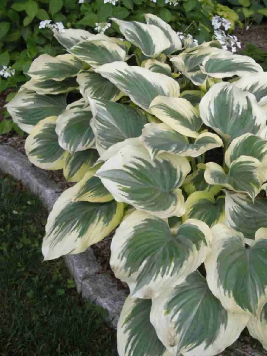 Хоста **Victory** пленяет взор крупными сердцевидными листьями насыщенного изумрудно-зелёного цвета, украшенными широкой кремово-жёлтой каймой, придающей растению особую декоративность и элегантность. Листья плотные, слегка волнистые по краям, образуют пышную розетку высотой около полуметра, подчёркивая благородство облика. Цветоносы возвышаются над листвой, демонстрируя нежные светло-фиолетовые колокольчатые цветки, собранные в рыхлые кисти, источающие тонкий аромат. Растение предпочитает полутень и влажные плодородные почвы, прекрасно адаптируется к условиям средней полосы России, становясь украшением тенистых садов и парков.