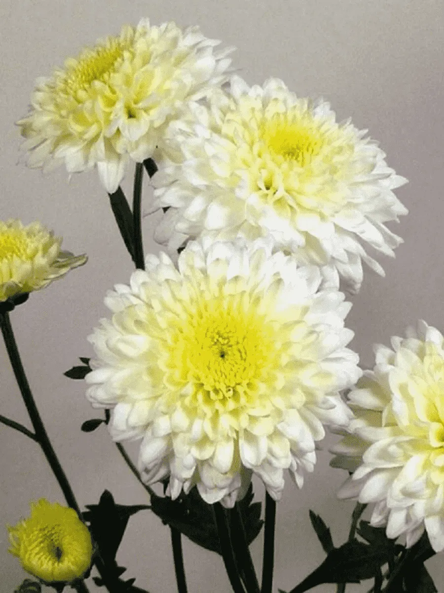 Хризантема сорта *Gerry Hoek White* пленяет взор своей изысканной простотой и благородством форм. Это компактное растение высотой около полуметра обладает прямостоячими стеблями, покрытыми плотными тёмно-зелёными листьями ланцетной формы с зубчатым краем, придающими кусту густоту и пышность. Цветки крупные, диаметром до десяти сантиметров, собраны в одиночные соцветия-корзинки, состоящие из множества узких лепестков белоснежного цвета, слегка загнутых внутрь, словно нежная кружевная манжета. Бутоны раскрываются постепенно, начиная снизу вверх, создавая эффект многослойности и придавая растению особую декоративность. Период цветения продолжительный, начинается поздним летом и длится вплоть до первых заморозков, украшая садовые композиции свежестью и чистотой оттенков даже в прохладную осеннюю пору.