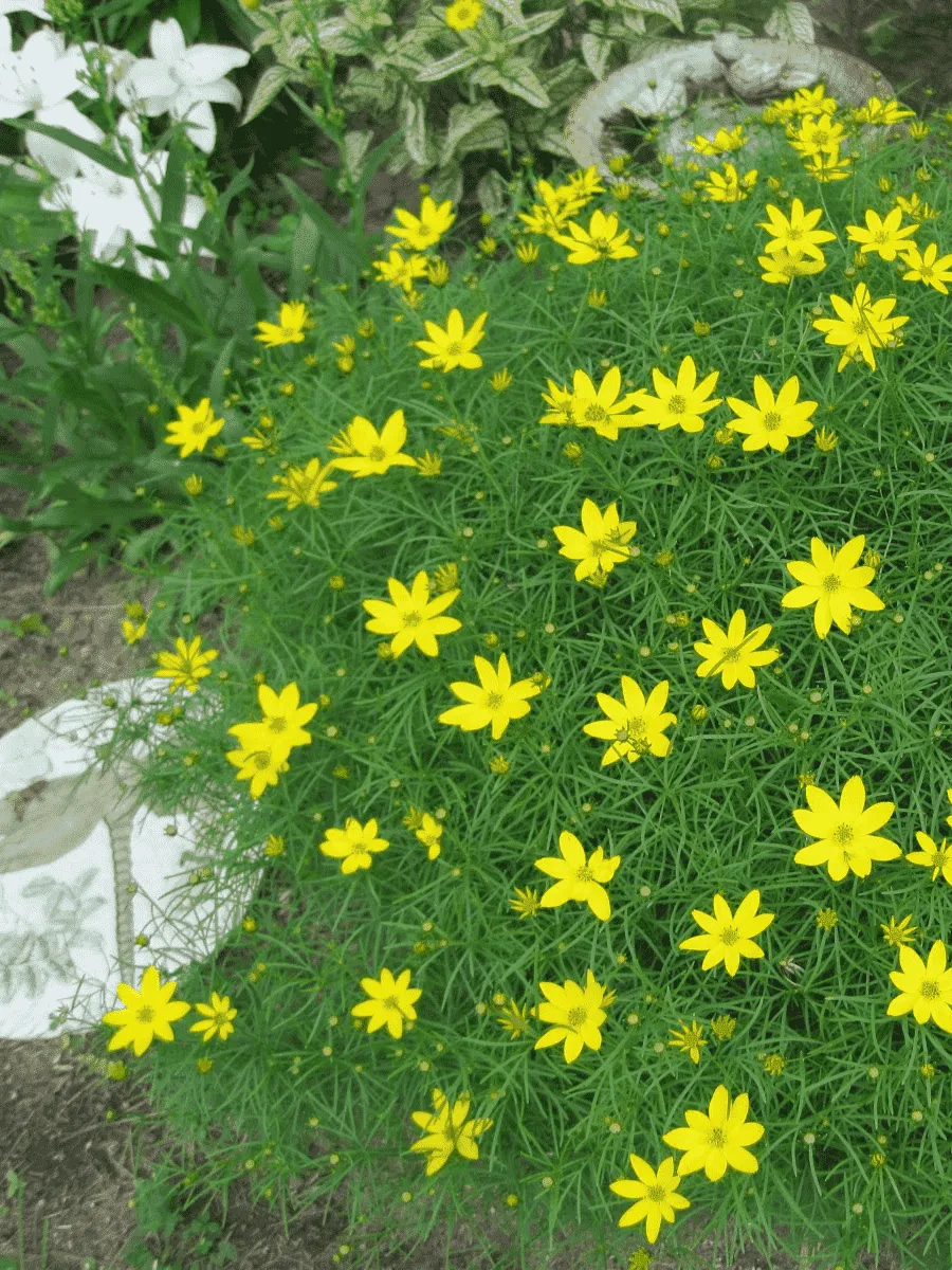 Кореопсис мутовчатый сорта *Zagreb* — очаровательное травянистое растение семейства астровых, покоряющее сердца садоводов своей жизнерадостной красотой и неприхотливостью. Стройные прямостоячие стебли высотой до полуметра украшены узкими линейно-ланцетными листьями насыщенного зелёного цвета, придающими растению лёгкость и воздушность. Но истинная прелесть раскрывается летом, когда появляются многочисленные яркие соцветия-корзинки диаметром около пяти сантиметров, сияющие солнечным золотисто-жёлтым цветом с тёмной сердцевиной. Цветки держатся долго, радуя глаз своим очарованием вплоть до осени. Растение предпочитает солнечные места и хорошо дренированные почвы, легко размножается семенами и прекрасно подходит для оформления клумб, бордюров и миксбордеров, создавая атмосферу тепла и света даже в пасмурную погоду.