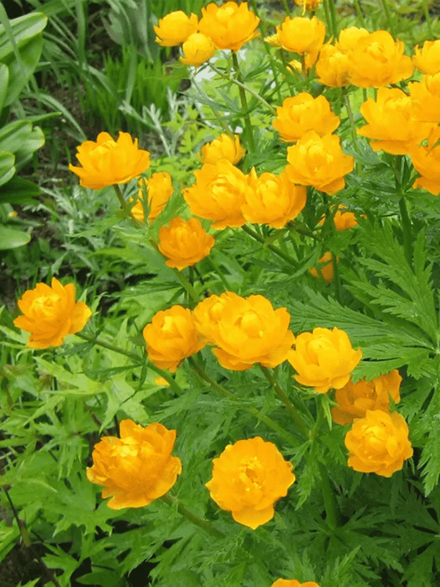 Купальница китайская *Golden Queen* пленяет взор изысканным сочетанием элегантности и природной грации. Это многолетнее травянистое растение достигает высоты до полуметра, обладая крепким прямостоячим стеблем и крупными пальчато-раздельными листьями насыщенного зелёного оттенка, словно вырезанными искусным мастером. Цветки крупные, диаметром около восьми сантиметров, распускаются в мае-июне, очаровывая нежностью золотисто-жёлтых лепестков, собранных в пышную чашу, будто солнечные лучи застряли среди зелени. Растёт купальница медленно, предпочитая полутень и влажные плодородные почвы, создавая живописные островки света в тенистых уголках сада. Её присутствие наполняет пространство утончённой гармонией природы, превращаясь в истинное украшение любого ландшафта.