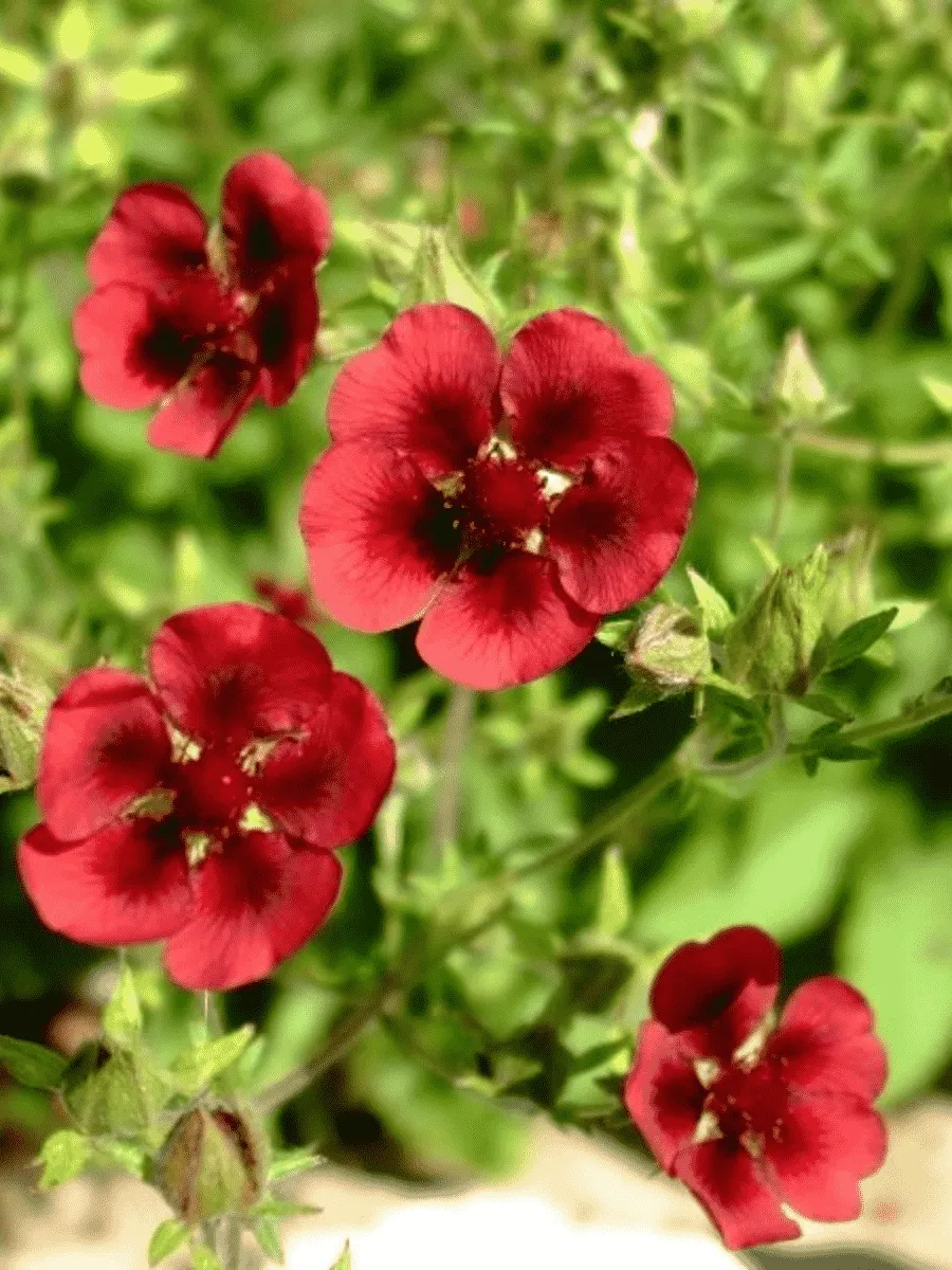 Лапчатка гибридная сорта *Monarch Velvet* пленяет взор роскошной кроной густых тёмно-зелёных листьев, словно бархатных на ощупь, украшенных изысканной зубчатостью края. Цветки её раскрываются пышным букетом крупных махровых соцветий насыщенного рубиново-красного оттенка, переливающегося оттенками от алого до пурпурного, создавая впечатление огненных вспышек среди зелени. Высота взрослого куста достигает одного метра, позволяя растению уверенно занимать пространство сада, демонстрируя свою элегантную силуэтность и благородство форм. Корневая система мощна и разветвлена, обеспечивая устойчивость даже на открытых участках, где растение легко переносит ветер и солнце, сохраняя свежесть облика. Сорт отличается продолжительностью цветения, начиная радовать глаз уже весной и заканчивая лишь поздней осенью, когда последние лепестки медленно уступают место зимнему покою.