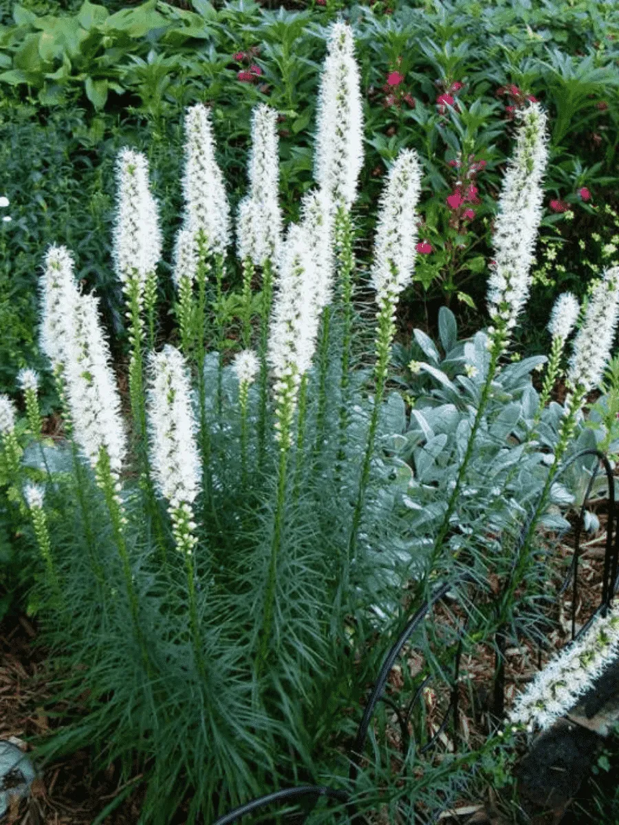 Лиатрис колосковый Alba — элегантная многолетняя культура семейства астровых, покоряющая сердца садоводов своей утончённой красотой и воздушностью соцветий. Стройные прямостоячие стебли высотой до метра украшены узкими линейными листьями насыщенного зелёного цвета, придающими растению лёгкость и грациозность. Цветёт лиатрис пышной кистью белоснежных цветков, собранных в плотную цилиндрическую метёлку длиной около десяти сантиметров, словно нежный пушистый хвостик, устремлённый вверх. Бутоны раскрываются снизу-вверх, создавая эффект постепенной волны цветения, который длится несколько недель. Растение предпочитает солнечные участки и хорошо дренированные почвы, легко адаптируется к различным климатическим условиям и устойчиво к засухе. Благодаря своему привлекательному облику и длительному периоду декоративности, лиатрис широко используется в ландшафтном дизайне, украшая клумбы, миксбордеры и срезочные букеты изысканным белым цветом и тонким ароматом свежести.
