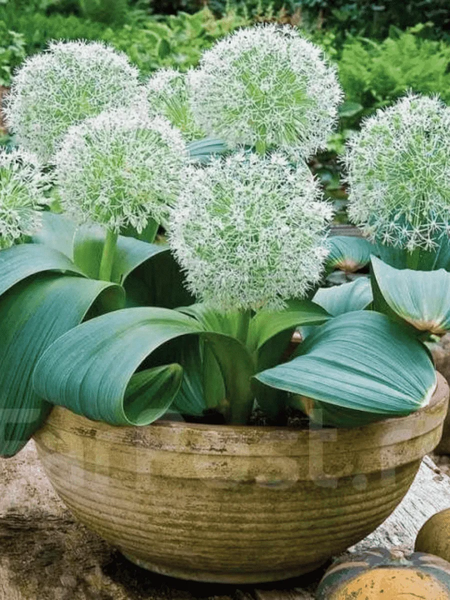 Лук декоративный *Ivory Queen* пленяет взор нежностью белоснежных цветков, собранных в крупные шаровидные соцветия, возвышающиеся над изумрудной листвой на стройных стеблях высотой до полуметра. Листья линейные, гладкие, насыщенно-зелёные, слегка восковые, придающие растению элегантность и свежесть облика. Цветёт обильно и продолжительно, начиная с конца весны и вплоть до середины лета, наполняя сад тонким ароматом и создавая впечатление воздушности благодаря ажурному строению зонтичных соцветий. Предпочитает солнечные места, хорошо дренированные почвы и умеренный полив, легко размножается луковицами-детками, формирующимися ежегодно вокруг материнской луковицы. Этот лук идеально подходит для оформления бордюров, миксбордеров и каменистых садов, привнося в ландшафтную композицию изысканность и утончённость.