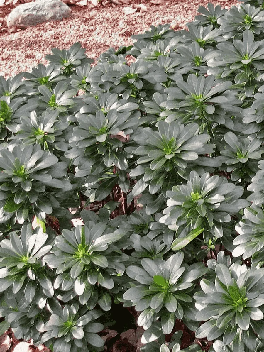 Молочай миндалевидный (*Euphorbia robiae*) — многолетнее травянистое растение семейства молочайных, покорившее сердца садоводов своей неприхотливостью и декоративностью. Стебель прямостоячий, крепкий, покрытый мелкими волосками, достигает высоты до полуметра. Листья расположены супротивно, овально-ланцетной формы, слегка зубчатые по краю, окрашены в насыщенный зелёный оттенок с лёгким серебристым отливом, особенно заметным при ярком солнечном свете. Цветки собраны в небольшие зонтики, окружённые яркими жёлтыми брактеями, придающими растению праздничный облик во время цветения, которое начинается ранней весной и продолжается вплоть до середины лета. Корневая система мощная, глубоко проникающая в почву, благодаря чему растение легко переносит засуху и неблагоприятные условия среды. Предпочитает солнечные места и хорошо дренированные почвы, распространено преимущественно в Средиземноморье, однако успешно культивируется и в садах умеренного климата Европы и России, украшая каменистые сады, альпийские горки и бордюры своим элегантным обликом и жизнерадостной энергией.