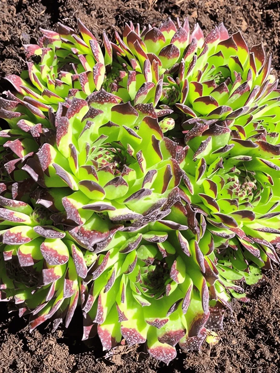 Молодило гибридное **Faraon** — очаровательное суккулентное растение, покорившее сердца садоводов своей неприхотливостью и декоративностью. Его компактная розетка состоит из мясистых, плотных листочков, словно покрытых тонким слоем воска, придающим листьям благородную матовую поверхность. Окраска варьируется от насыщенно-зелёной до серебристо-голубоватой, иногда украшенной нежными красноватыми оттенками по краям. Листья плотно прилегают друг к другу, создавая впечатление миниатюрного цветка, раскрывающегося навстречу солнцу. Цветёт молодило скромно, выбрасывая высокие стрелки с мелкими звёздчатыми цветами кремово-жёлтого оттенка, привлекающими внимание насекомых-опылителей. Растение отличается удивительной способностью размножаться вегетативно, формируя вокруг материнского экземпляра многочисленные детки, превращаясь в живописные зелёные коврики, способные украсить любой садовый уголок.