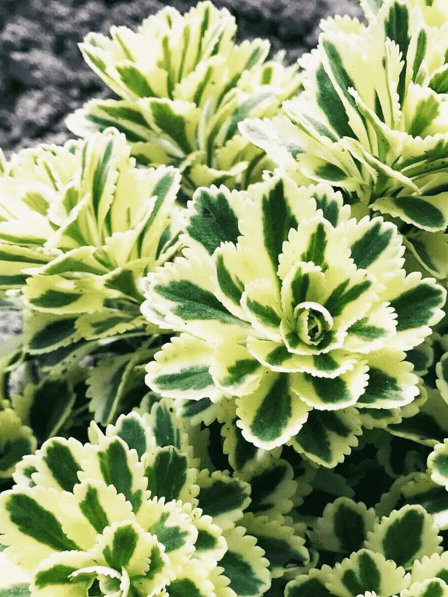 Очиток такесимский 'Atlantis' — изысканное травянистое растение с плотными розетками мясистых серо-зелёных листьев, покрытых серебристым восковым налетом, придающим им благородную перламутровую дымку. Листья овально-ланцетной формы слегка волнистые по краям, словно нежная рябь на поверхности тихого озера. Цветёт обильно мелкими звёздчатыми цветами нежно-жёлтого оттенка, собранными в рыхлые соцветия, возвышающиеся над лиственной массой на тонких прочных стеблях. Растение отличается компактностью и аккуратностью форм, прекрасно разрастаясь ковром, покрывающим почву живописными переливающимися оттенками от серебристых до изумрудных цветов. Благодаря своей неприхотливости и декоративности очиток широко используется в альпинариях, рокариях и каменистых садах, где создаёт эффектные композиции, подчёркивая красоту природного ландшафта.