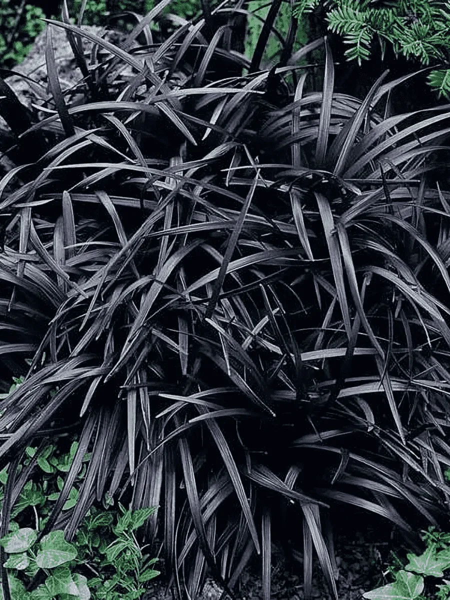 Офиопогон плоскострелый *Niger* — изысканное травянистое растение семейства лилейных, покоряющее своей утончённой простотой и благородством форм. Его узколинейные листья длиной до полуметра собраны в плотную прикорневую розетку, создавая живописный зелёный веер, словно кисть художника, бережно касающаяся земли. Листья гладкие, блестящие, насыщенно-зелёного цвета с едва заметной сизоватостью, придающей растению особую элегантность и глубину восприятия. Цветки офиопогона скромны и неприметны, однако именно в этой сдержанности кроется особая прелесть: мелкие белые звёздочки раскрываются лишь ненадолго, украшая собой тенистые уголки сада или лесной чащобы. Растёт медленно, предпочитая влажные почвы и полутень, где чувствует себя наиболее комфортно и гармонично вписывается в природный ландшафт. Этот тихий обитатель лесов очаровывает своим спокойствием и достоинством, становясь украшением любого садового участка или лесного массива.