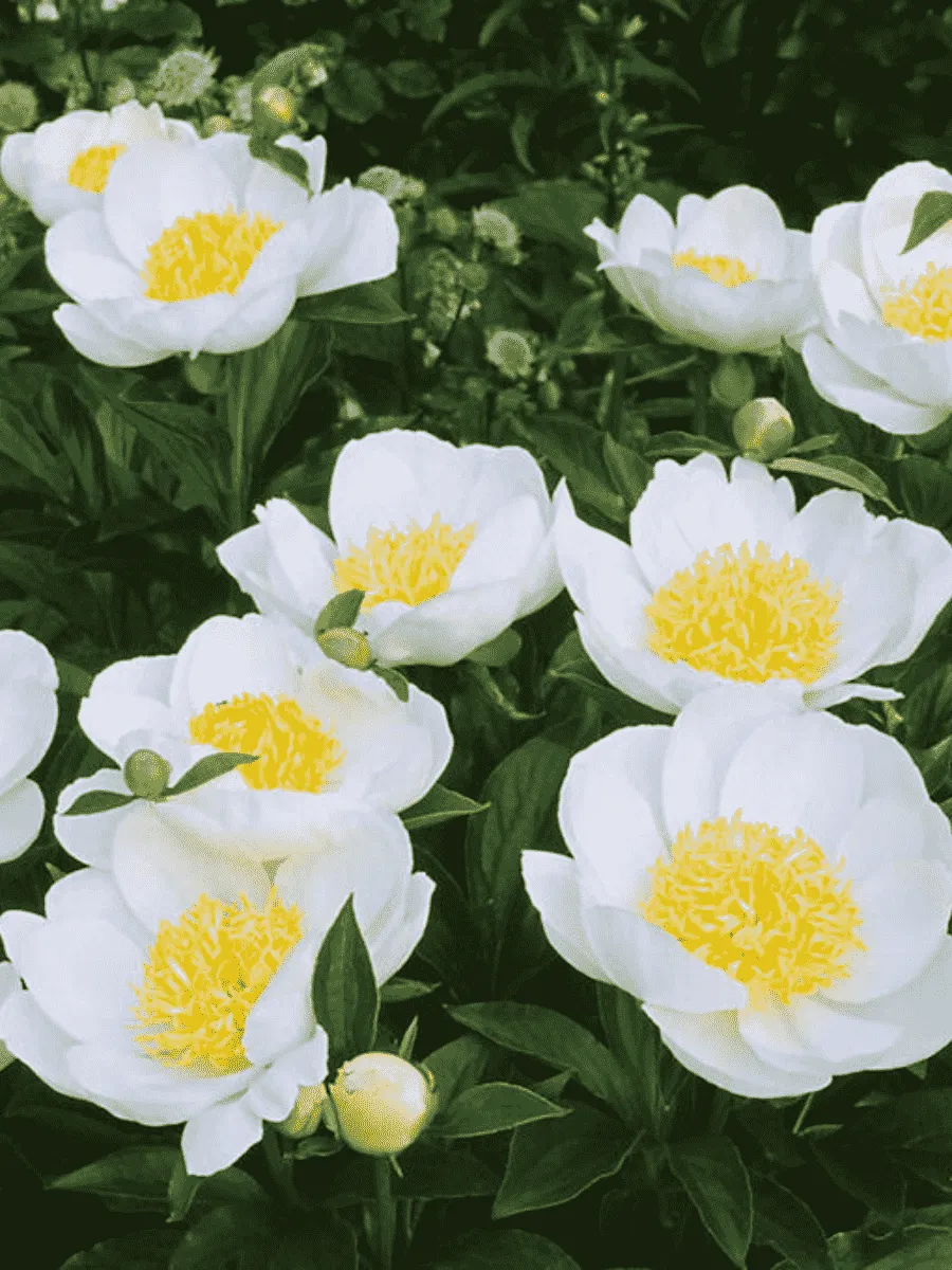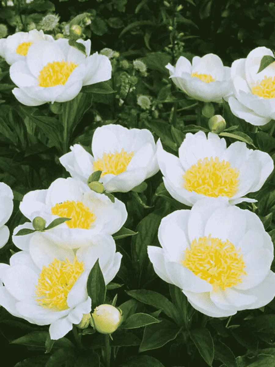 Пион травянистый сорта *Jan van Leeuwen* пленяет взор роскошью своего цветения и благородством облика. Это многолетнее растение достигает высоты около метра, обладая крепкими прямостоячими стеблями, покрытыми крупными рассечёнными листьями насыщенно-зелёной окраски, слегка блестящими и рельефными, придающими кусту пышность и объём. Цветки крупные, диаметром до 15 см, махровые, состоят из множества лепестков нежнейшего кремово-белого оттенка с едва уловимым золотистым отливом, словно сотканные из тонкого шёлка. Сердцевина цветка украшена многочисленными тычинками лимонно-жёлтого цвета, контрастирующими с белизной лепестков и подчёркивающими изысканность композиции. Аромат цветков тонкий, приятный, наполняющий воздух сладостью и свежестью весеннего сада. Растёт пион медленно, формируя компактную крону, устойчив к болезням и неблагоприятным погодным условиям, прекрасно зимует даже в суровых климатических зонах средней полосы России.