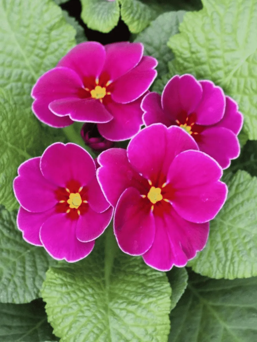 Примула сорта *Hethor Springsun Violet* пленяет взор нежностью своего облика и утончённостью форм. Это компактное растение высотой около 15–20 см образует плотную розетку округлых бархатистых листьев насыщенного зелёного цвета с лёгким серебристым отливом. Листья слегка волнистые по краям, словно кружевная кайма, придают растению особую декоративность даже вне периода цветения. Цветоносы возвышаются над листвой, увенчанные крупными одиночными цветами диаметром до 6 сантиметров. Лепестки цветков окрашены в глубокий фиолетово-сиреневый оттенок с золотистым центром, создавая эффект солнечного луча, пронзающего утренний туман. Цветение начинается ранней весной и продолжается несколько недель, наполняя сад изысканным ароматом и радуя глаз своей живописной красотой. Растёт примула медленно, предпочитая полутень и влажные плодородные почвы, легко адаптируясь к умеренному климату средней полосы России.