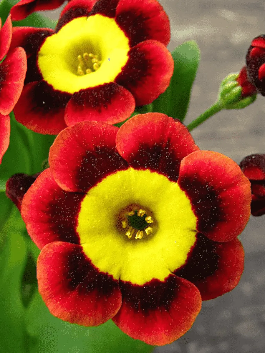 Примула сорта *Ted Roberts* пленяет взор нежностью своего облика и утончённостью форм. Это компактное растение высотой около 15–20 см образует плотную розетку округлых, слегка волнистых листьев насыщенного зелёного цвета с лёгким восковым блеском. Листья крупные, мясистые, словно бархатные подушки, украшенные тонкими прожилками, придающими особую изысканность общему виду. Цветоносы возвышаются над лиственной массой, увенчанные крупными цветами диаметром до 6 сантиметров, собранными в рыхлые зонтики. Лепестки цветков имеют глубокую чашевидную форму, окрашены в яркие оттенки жёлтого с золотистым отливом, переходящим в лимонно-жёлтый оттенок ближе к краям лепестков. Сердцевина цветка украшена контрастной тёмно-коричневой точкой, подчёркивающей элегантность композиции. Период цветения продолжительный, начинается ранней весной и длится несколько недель, наполняя сад солнечным светом и весенним настроением. Растёт примула медленно, предпочитая полутень и влажные плодородные почвы, легко адаптируется к различным условиям выращивания, радуя садоводов своей неприхотливостью и декоративностью.