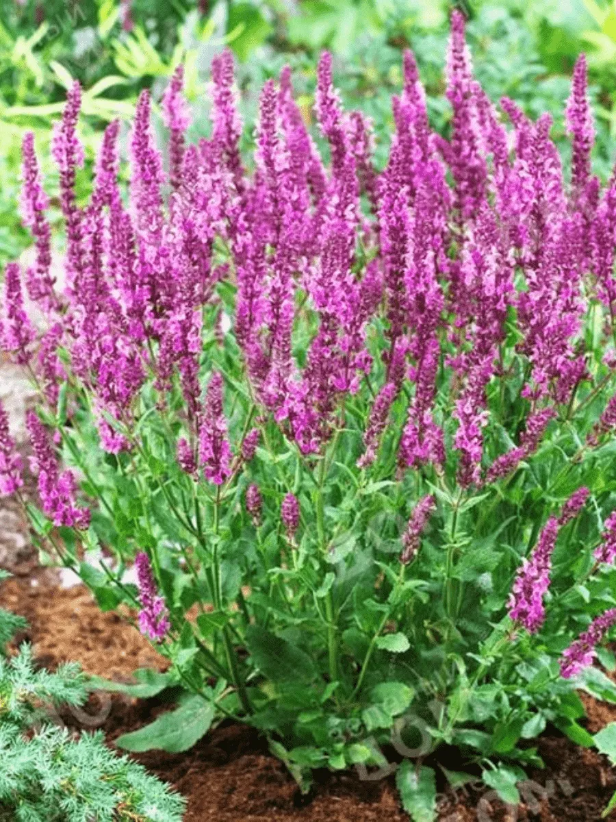 Шалфей дубравный сорта *Sensation Rose* пленяет взор нежностью пастельных оттенков и утончённой красотой соцветий. Это многолетнее растение достигает высоты около полуметра, формируя компактную кустистую крону с прямыми прочными стеблями. Листья шалфея овально-ланцетной формы, слегка морщинистые, покрыты мягким пушком, придающим им бархатистость и серебристо-зелёный оттенок. Цветки собраны в длинные колосовидные кисти, возвышающиеся над листвой, словно миниатюрные свечи, украшенные розово-лиловыми венчиками с пурпурным отливом. Период цветения продолжительный, начинается в июне и длится до конца лета, наполняя сад тонким ароматом пряности и свежести. Растение предпочитает солнечные места, хорошо дренированные почвы и умеренный полив, легко адаптируется к различным климатическим условиям, становясь украшением каменистых садов, бордюров и миксбордеров.