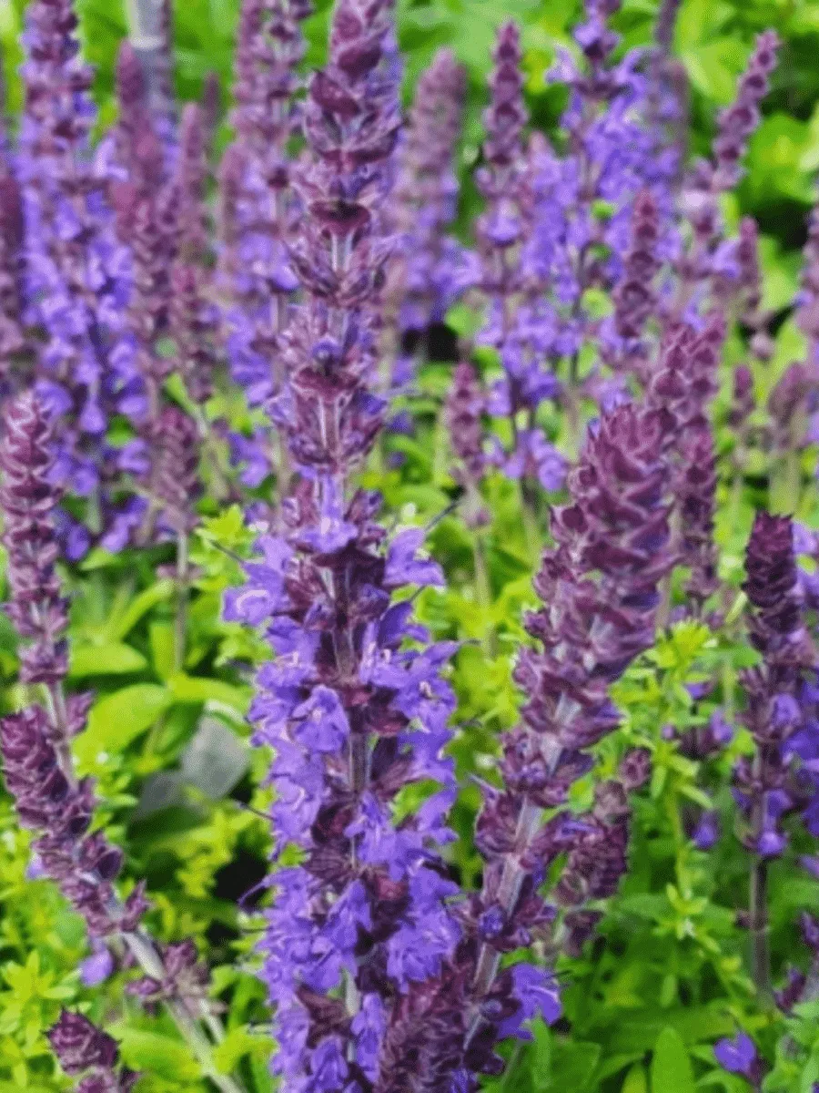 Шалфей дубравный сорта *Synchro Blue* пленяет взор своей утончённой красотой и благородством форм. Это многолетнее травянистое растение достигает высоты около полуметра, формируя компактную кустистую крону с прямостоячими стеблями, покрытыми нежной пушистой опушкой. Листья шалфея крупные, сердцевидные, слегка морщинистые, насыщенно-зелёного цвета с серебристым отливом, словно украшенные тонкой россыпью перламутровых бликов. Цветёт обильно и продолжительно, начиная с июня и до конца лета, покрываясь многочисленными колосовидными соцветиями, состоящими из множества мелких цветков глубокого синего оттенка, будто отражающих ясность летнего неба. Растение предпочитает солнечные места, хорошо дренированные почвы и умеренный полив, легко адаптируясь к различным условиям произрастания благодаря своей природной выносливости и неприхотливости. Благодаря изысканной декоративности шалфей широко используется в ландшафтном дизайне, создавая живописные акценты в садах и парковых композициях.